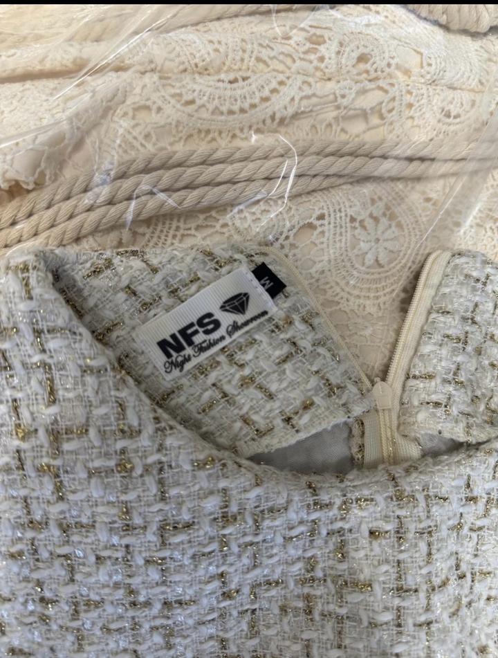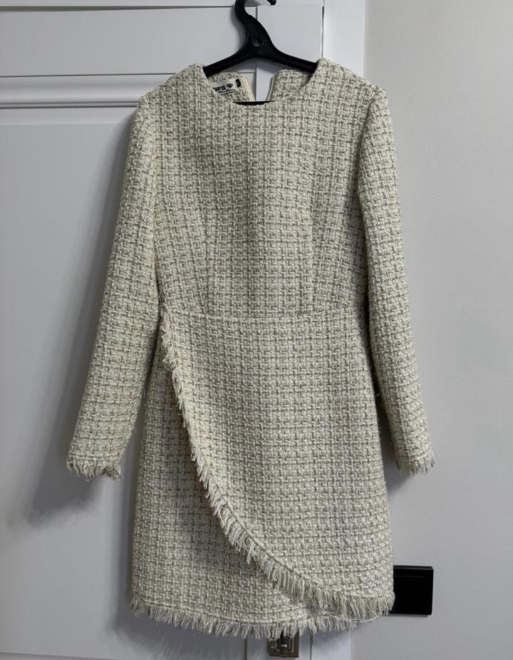 Белое твидовое платьеS
