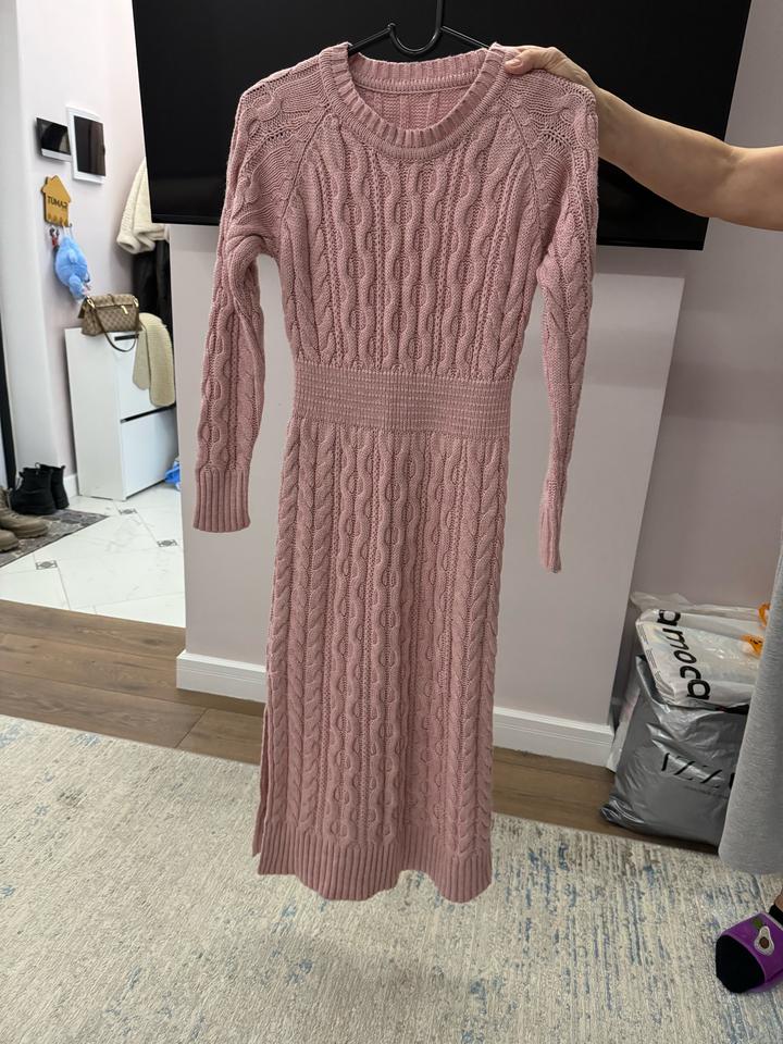 Вязаное розовое платьеS/M