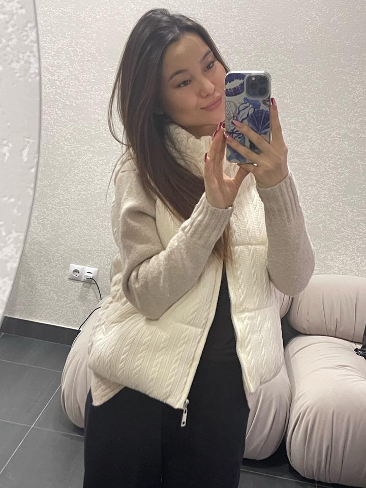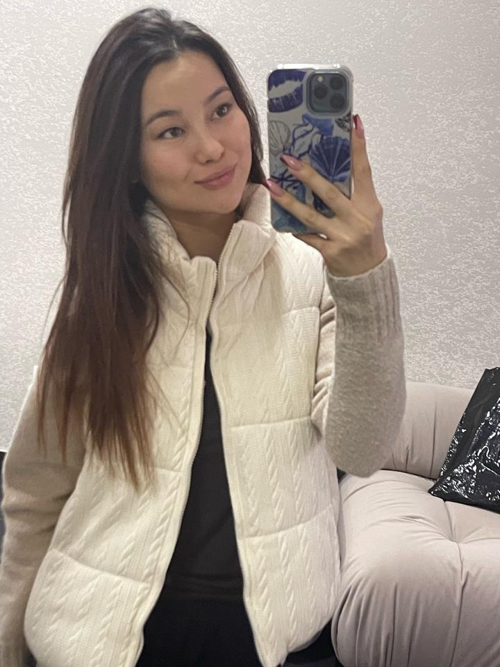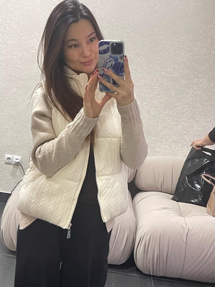 Трендовая вязаная безрукавка — уют этой весны! ✨ Добавьте нежности и тепла в свой гардероб. Этот жилет с фактурной вязкой «косичка» — идеальный выбор для создания многослойных образов. • Цвет: Нежный молочный (айвори) — освежает и выглядит очень дорого. • Дизайн: Стильный воротник-стойка и качественная фактурная вязка. • С чем носить: Идеально сочетается с водолазками, рубашками или тонкими джемперами, как на фото. Артикул: 518985