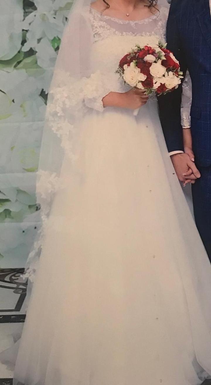 Свадебное белое, А силуэта платье, в стразах, ворот лодочкой, рукав 3/4. На корсете, подойдет на рр 48-50 рост 167-170. В комплекте имеется кольцо под юбку “двойка”. Артикул: 519034