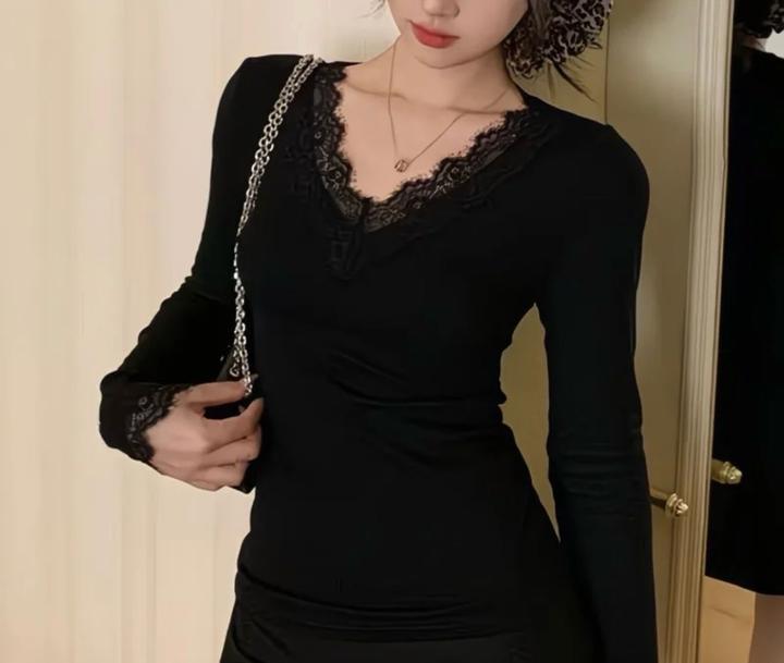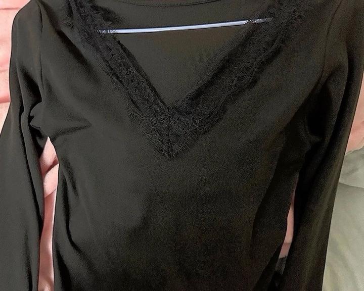 Черный кружевной лонгслив, с V -образным вырезом. Универсальный для любой одежды. Продаю потому что пришло не тогда когда надо было Артикул: 519037