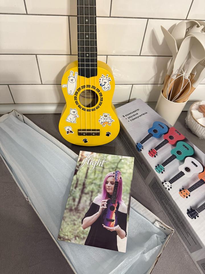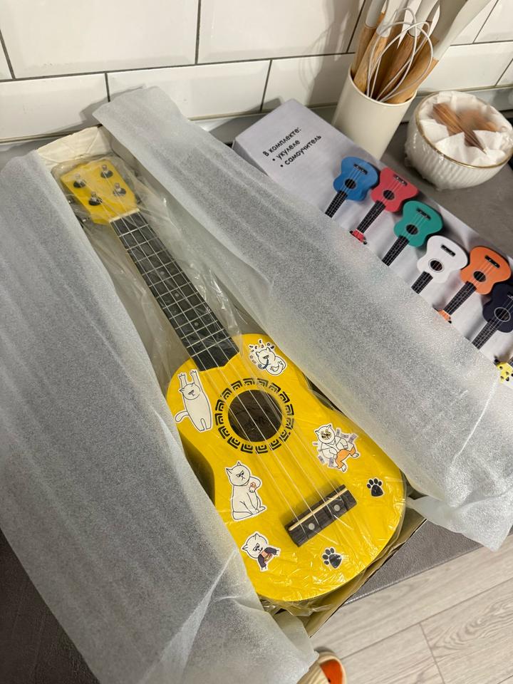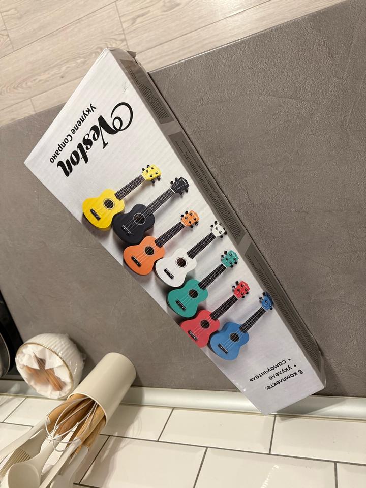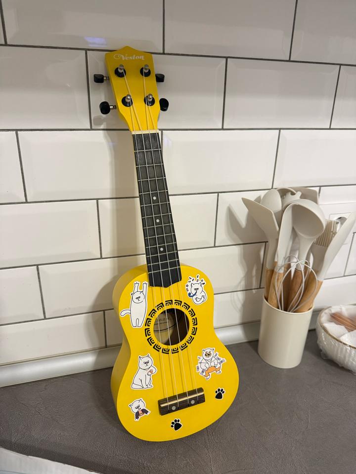 Укулеле Veston (желтая) Лёгкая, компактная укулеле, идеально подойдёт для начинающих или просто для души. Яркий жёлтый цвет, есть наклейки — придают свой вайб и настроение. В хорошем состоянии, звучит чисто. Хочу передать её человеку, который будет играть и получать удовольствие Артикул: 519064