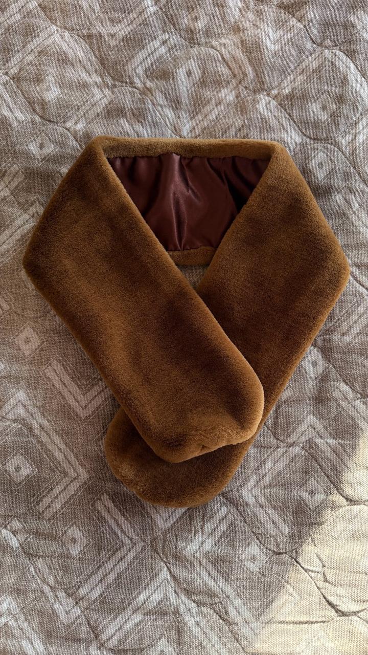 Небольшой шарф карамельного цвета, из качественного экомеха. Артикул: 519094