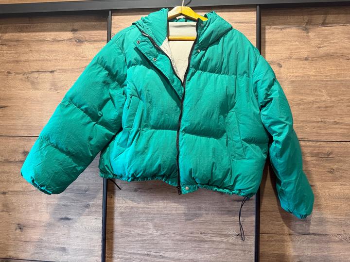 Пуховик укороченный оверсайз От 44 до 48 размера . Может и 50 Очень теплый , ни разу не одевали. Артикул: 519107