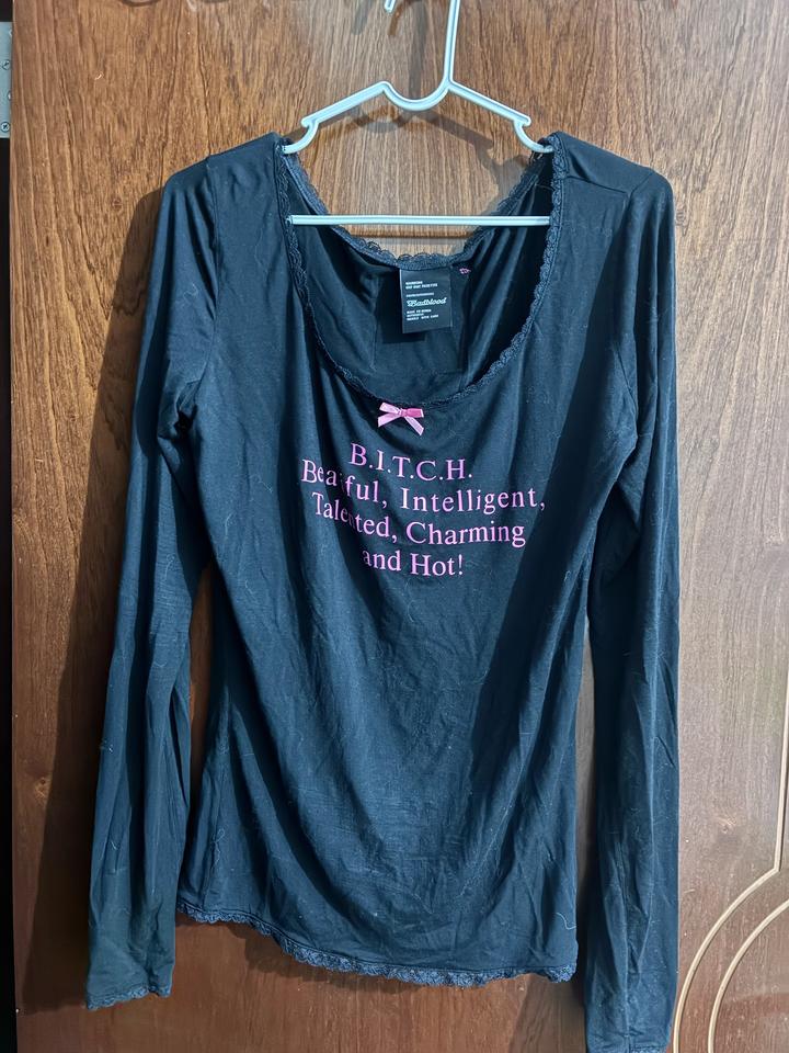 Лонгслив с надписью B.I.T.C.H корейского бренда Badblood, цвет как на фото 2 Указан как L, на XL тоже подходит В отличном состоянии, без дефектов Артикул: 519160