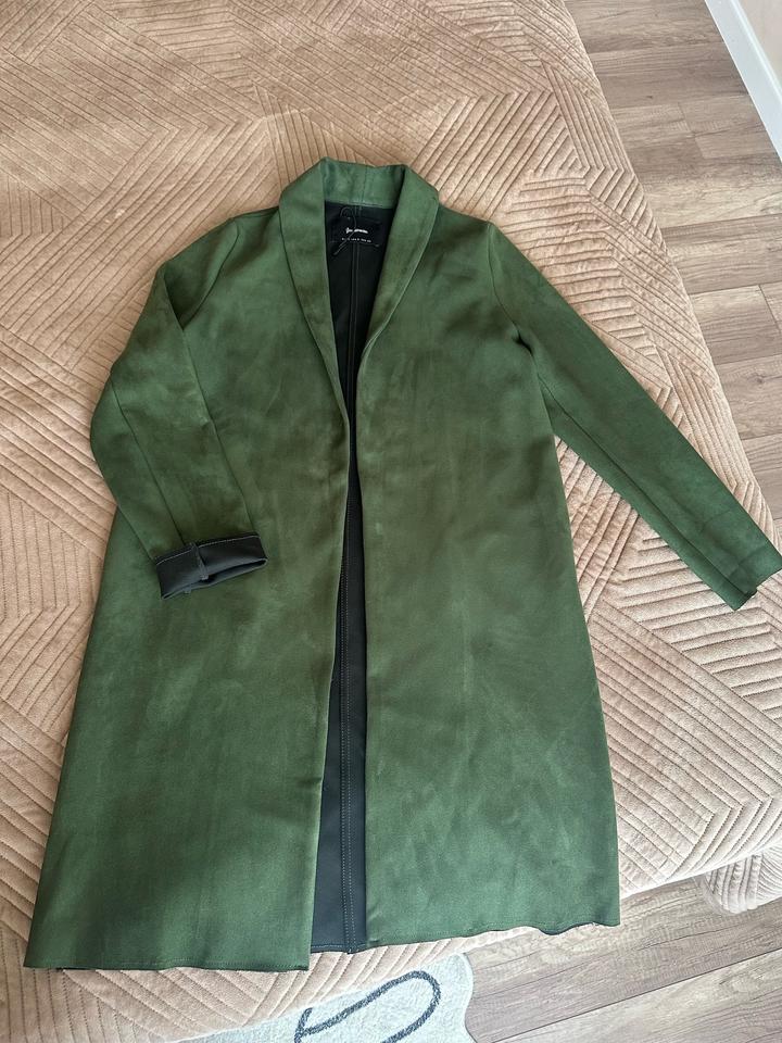 Тренч изумрудного цвета, подойдет на xs, s размер, по спинке длина 95 см, при моем росте 157см, прикрывает колено. Артикул: 519161