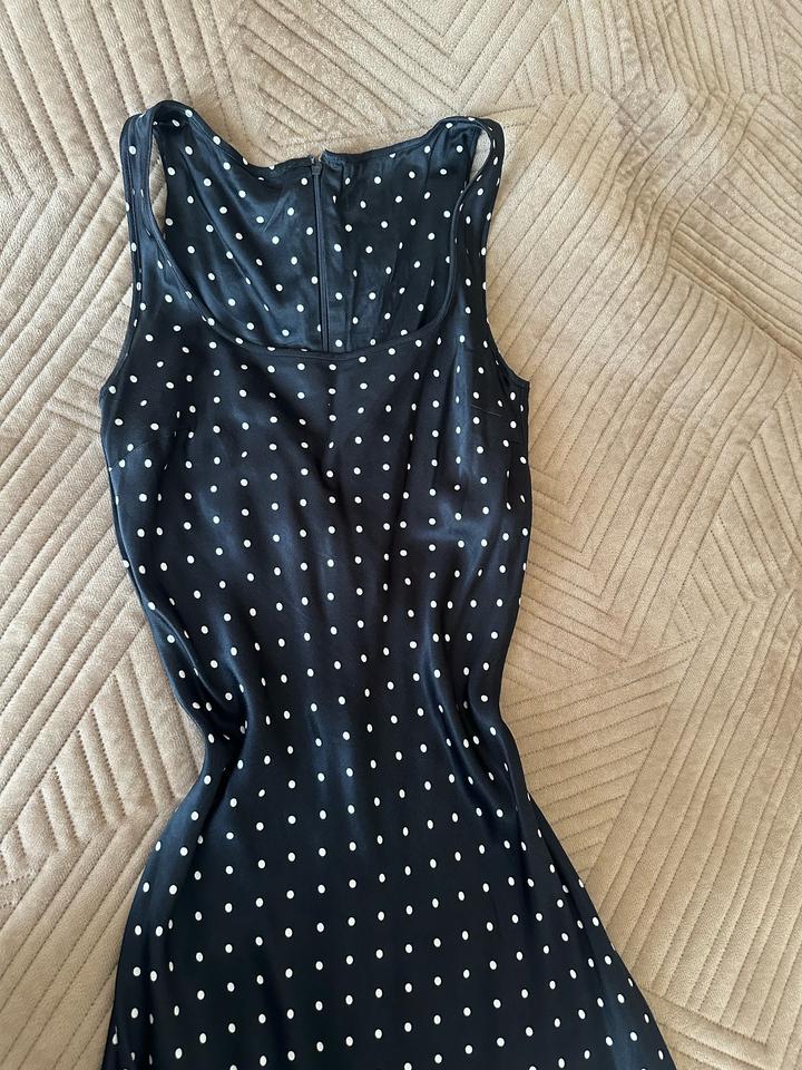 Шелковое платье, в размере Xs, на рост 160-165см, ярлыки и логотип отрезаны, по спинке вшивался замок для удобства и там есть один нюанс, на фото видно. Артикул: 519175