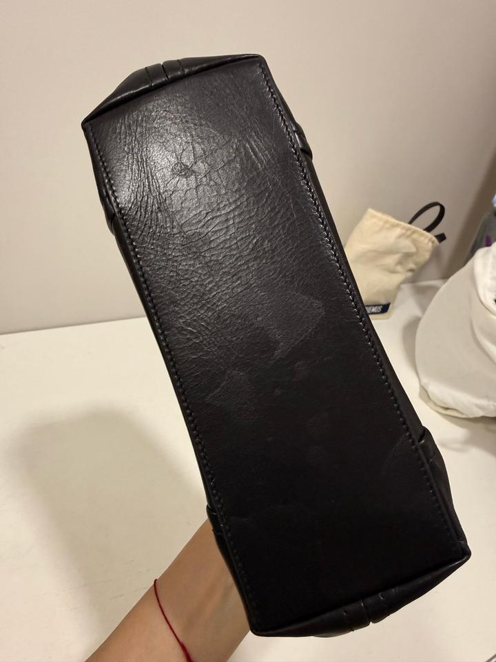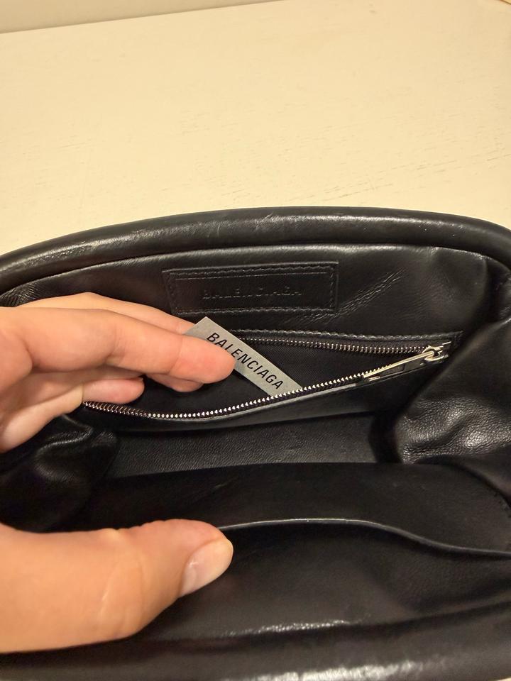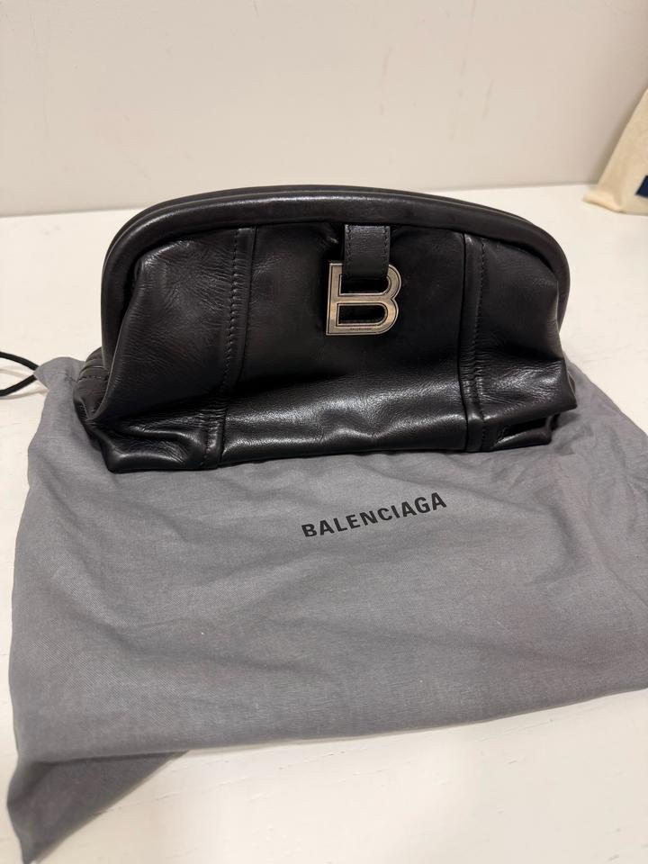 Элегантный и лаконичный клатч от Balenciaga. Модель выполнена из мягчайшей натуральной кожи. Главный акцент — узнаваемая фурнитура в виде буквы «B» в цвете состаренного серебра. Благодаря мягкой форме «облака» выглядит актуально и дорого. • Состояние: [Укажите состояние, например: Новой вещи / Есть минимальные следы носки на углах] • Материал: 100% кожа ягненка • Цвет: Черный (Black) • Комплектация: Оригинальный серый пыльник Balenciaga Особенности: Магнитный замок Артикул: 519218