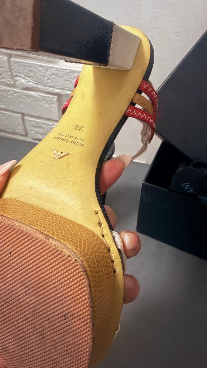 Продам босоножки Armani в среднем состоянии. Ушивались так как нога узкая. Артикул: 519310