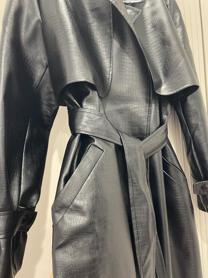Новый кожаный длинный тренч в рр 44. Идеально дополнит ваш стиль и гардероб. Артикул: 519442