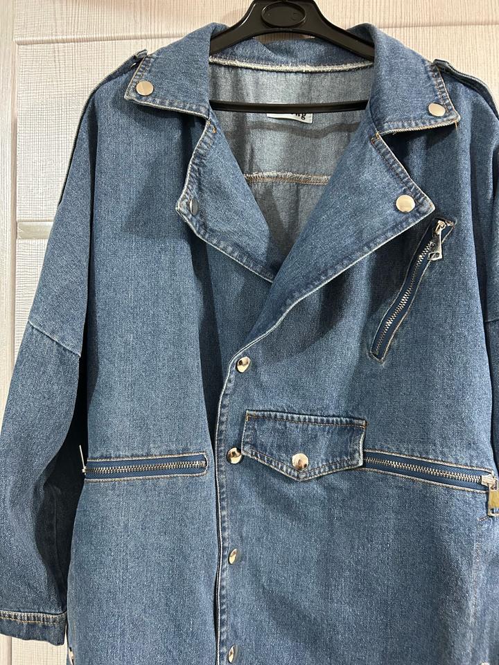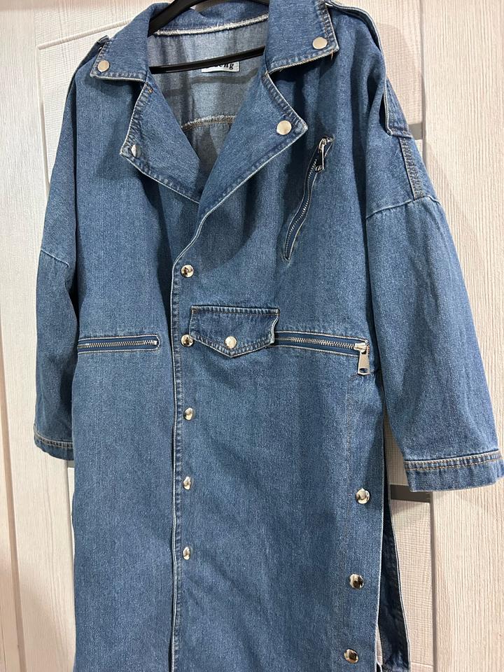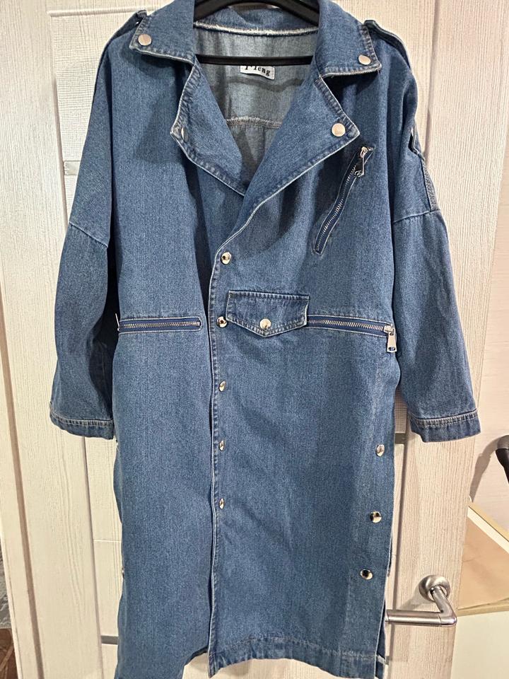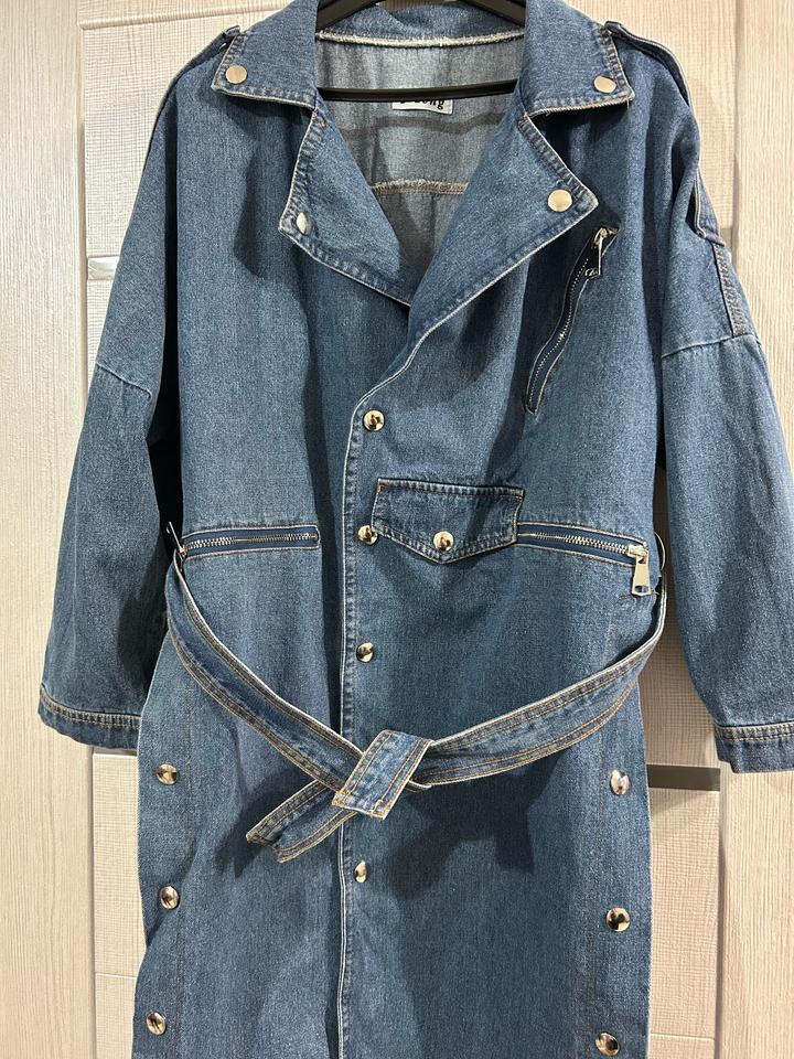 Продам джинсовый тренч в хорошем состоянии , по бокам разрезы на заклепках, имеется пояс Артикул: 519464