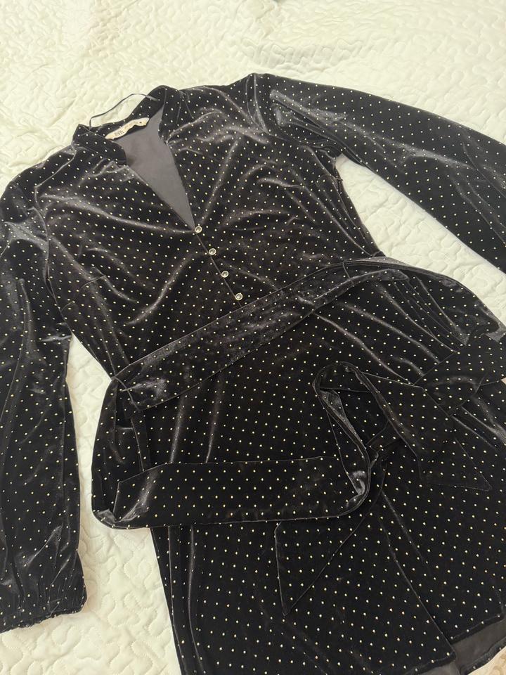 Платье бархатное черное от Zara , размер M длина выше колен ,имеется ремешок , состояние отличное Артикул: 519476