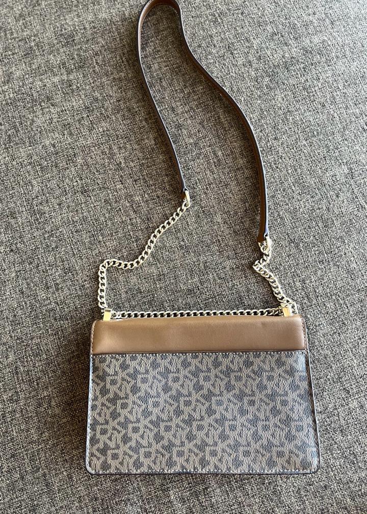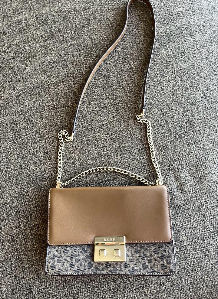 Кожаная сумка-кроссбоди DKNY коричневого цвета. Внутри одно отделение, два кармана, четыре слота для карт. Также снаружи сумки имеется дополнительный карман. Состояние идеальное. Не носили. Артикул: 519480