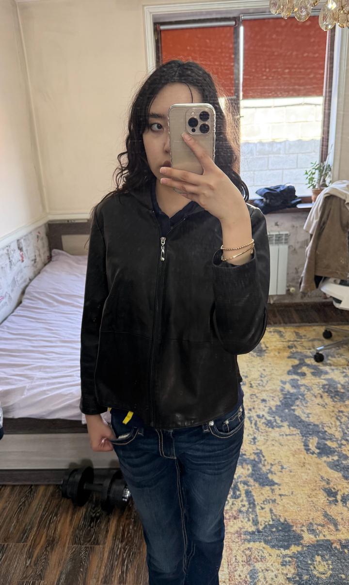 Куртка из натуральной телячей кожи Очень нежная и легкая Есть капюшон Нет дефектов, новая и носилась пару раз - в отличном состоянии Размер М Артикул: 519498