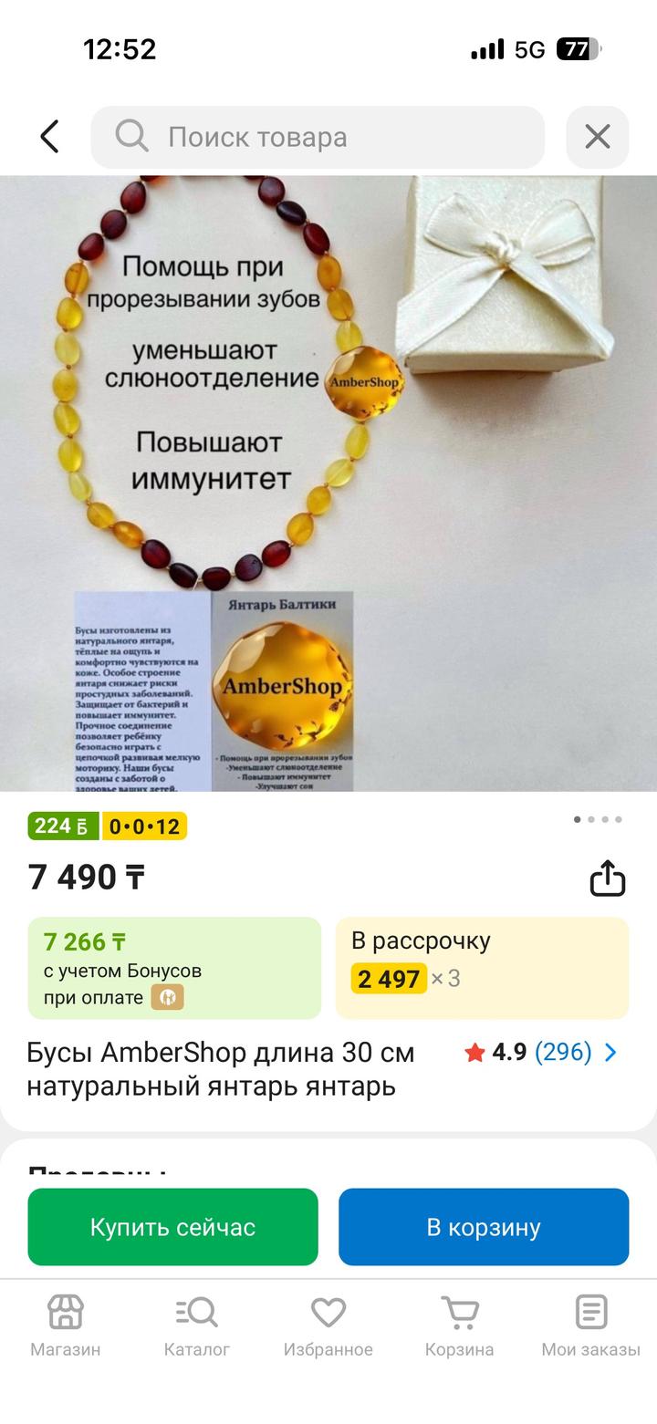 Натуральный янтарь – помогает облегчить дискомфорт при прорезании зубов. 30 см нам размер не подошло Артикул: 519506