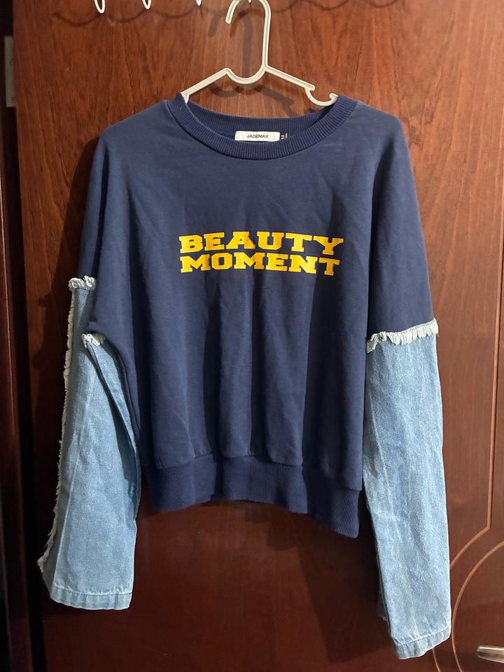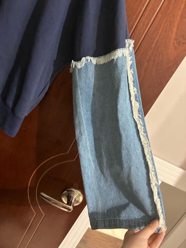 Комбинированный свитшот, рукава из денима Есть резинка на талии, рукава широкие, выглядит необычно и красиво В отличном состоянии, без дефектов Артикул: 519622