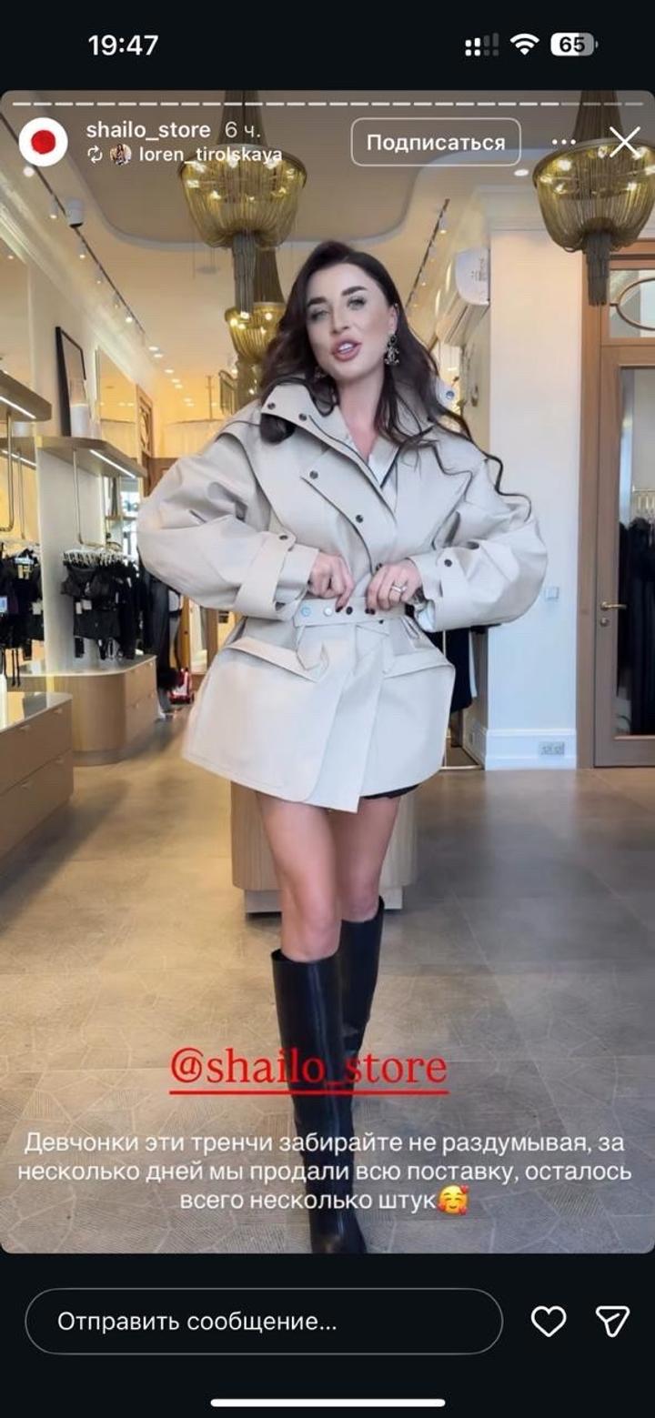 Тренч Shailo Цена бутика 380.000тг Надела один раз Размер единый, подходит от XS до XL Артикул: 519645