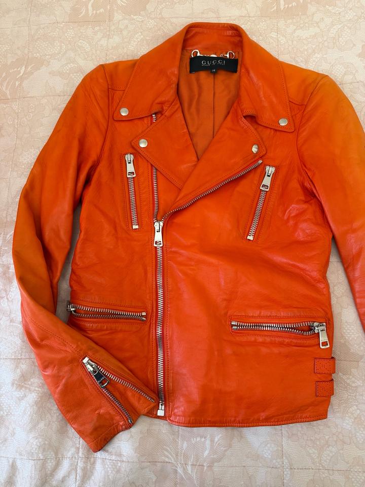 Кожанка оранжевая Gucci, размер 38, XS-S, оригинал Артикул: 519672