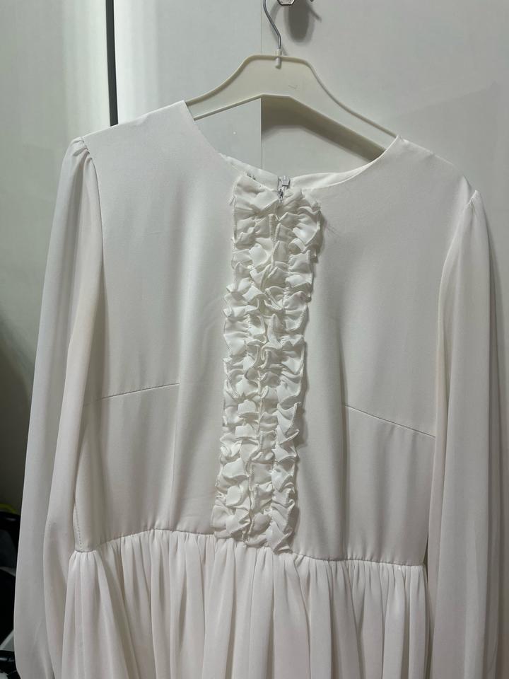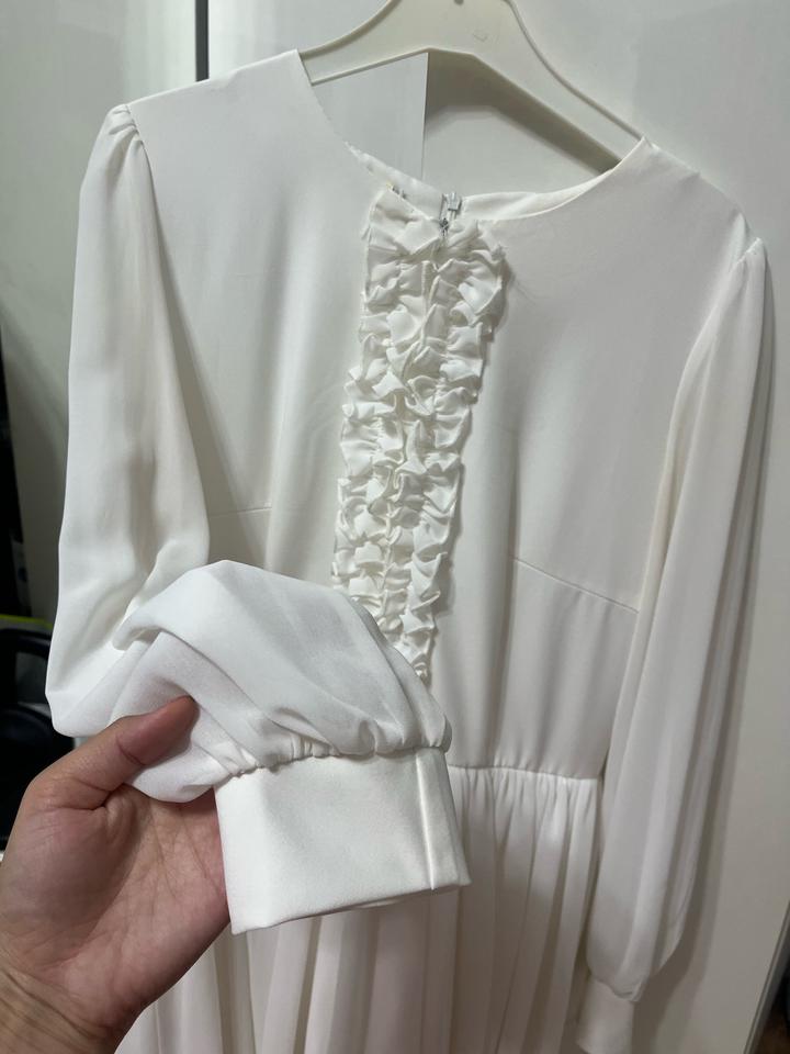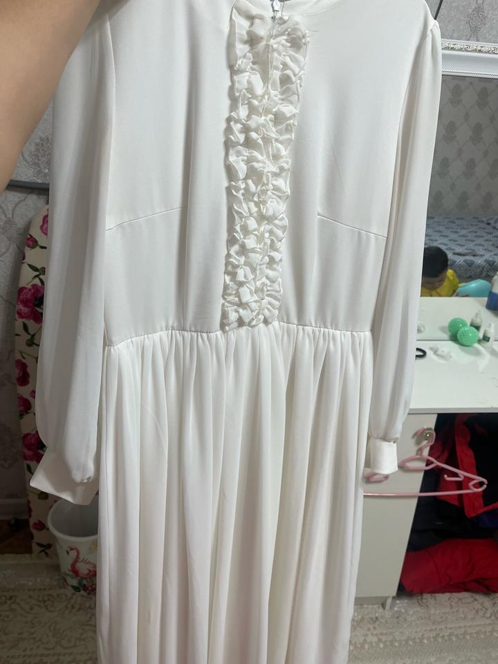 Ақ көйлек, ұлттық киім ретінде киюге болады. Жаңа түскен келіндерге, бойы қысқа,томпи қыздарға арналған. Алды,арты замок. Емізуге ыңғайлы. Размер 50. Алайда 46/48ге де болады. Артикул: 519716