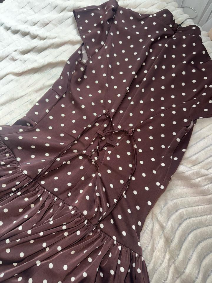 Коричневое платье в горошек, носила только один раз, состояние очень хорошее без дефектов. Артикул: 519768