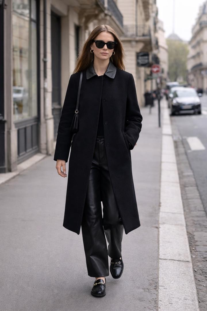 Стильное минималистичное пальто Sandro прямого кроя в духе quiet luxury 🖤 Акцент — кожаный воротник, который делает образ более дорогим и собранным. Идеально садится как на повседневные образы (джинсы, лоферы), так и на более классические (брюки, каблук). Базовая инвестиционная вещь, которая не выходит из моды. Покупалось за 289 тыс тенге, сейчас они уже стоят дороже. Артикул: 519790