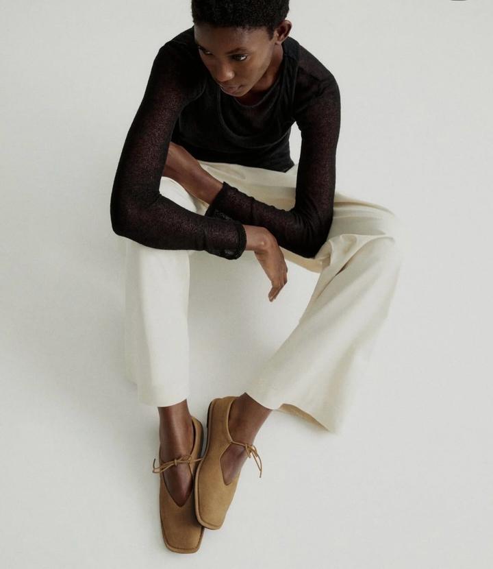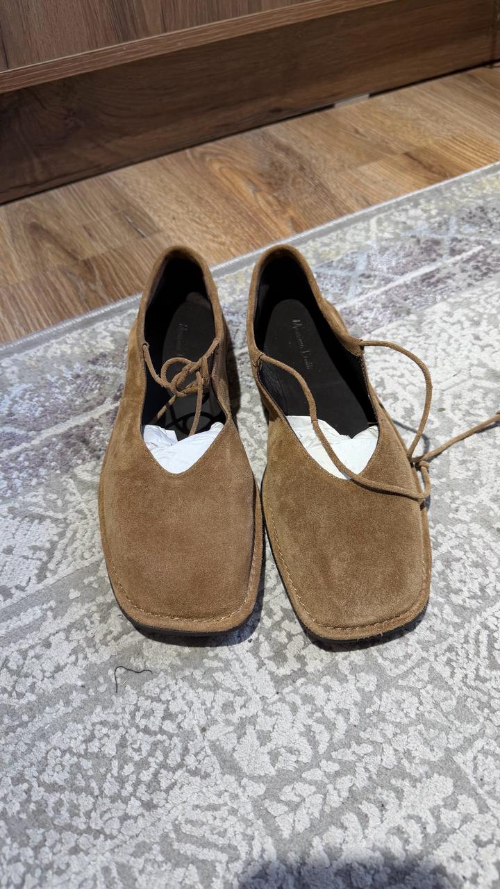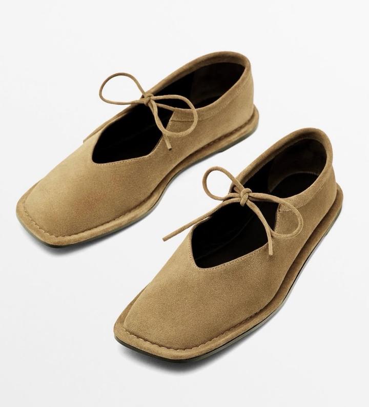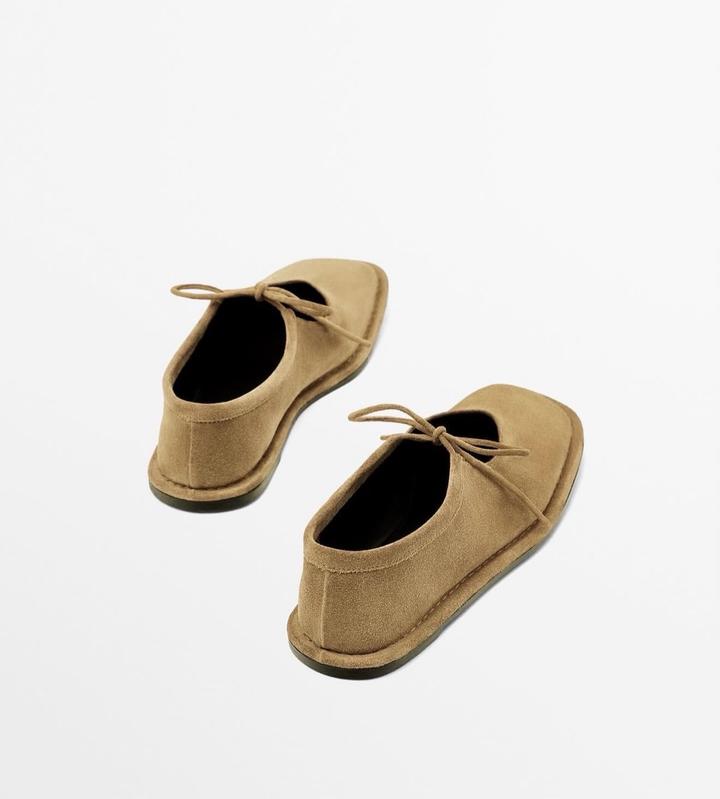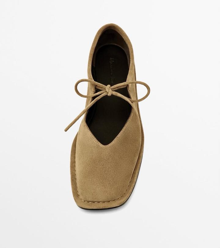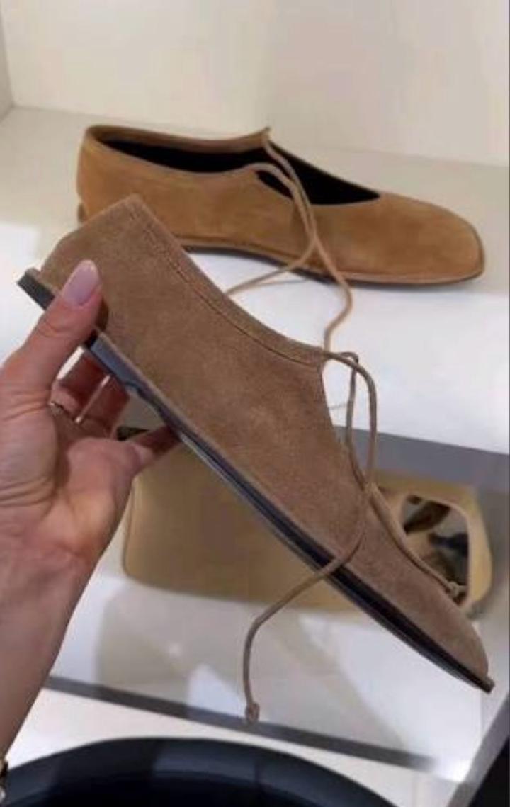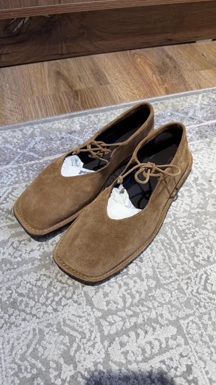 Балетки новые на шнурках от Massimo Dutti Натуральная замша Цвет песочный Размер 40 Актуальный квадратный носик В комплекте пыльник Артикул 1582/350 Артикул: 519800