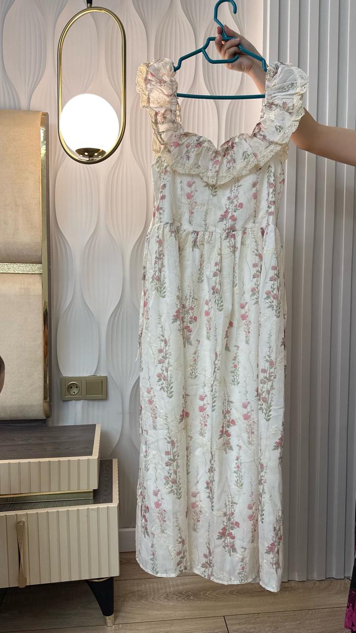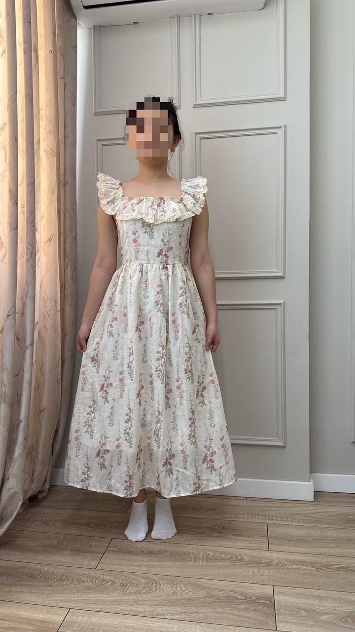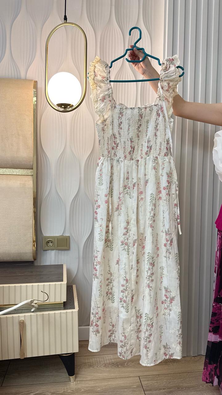 Турецкий летний сарафан в молочном цвете и в цветном принте , длина миди, размер S/M (44). Лёгкий и комфортный, идеально на лето Артикул: 519889