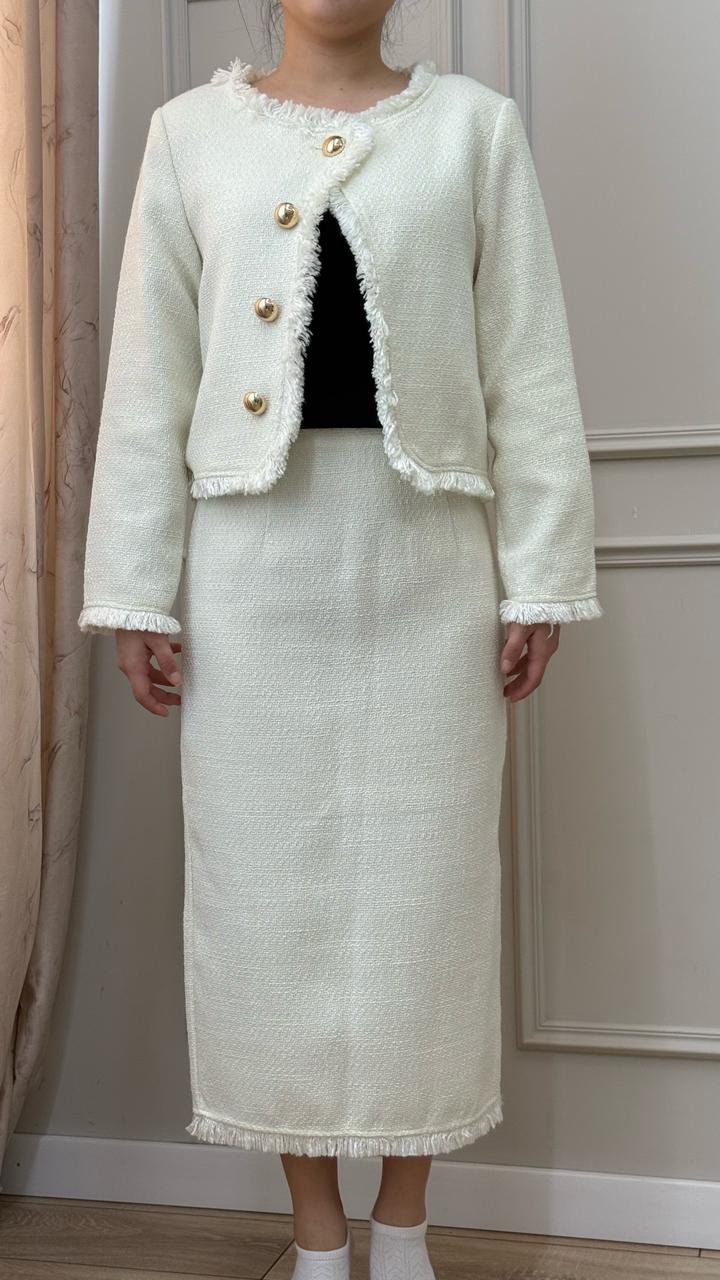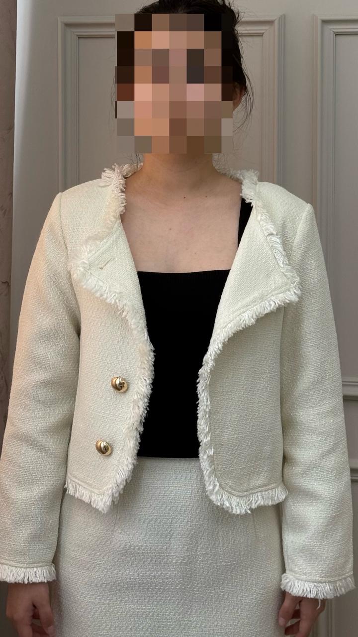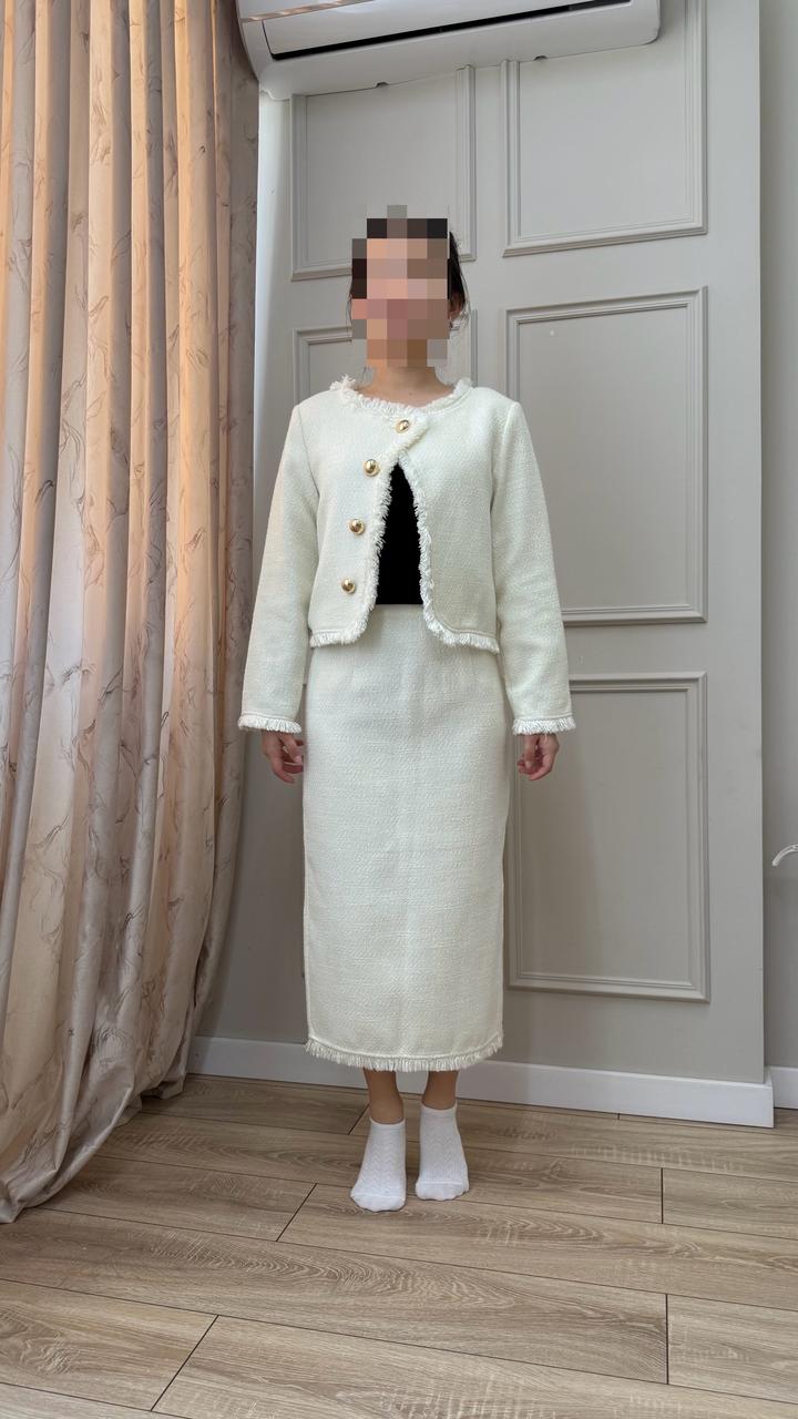Корейская молочная твидовая двойка в идеальном состоянии, размер S. Рост модели 158 Артикул: 519922