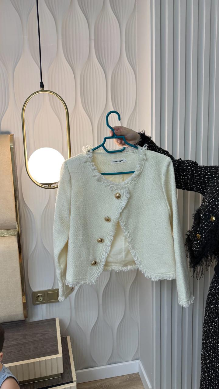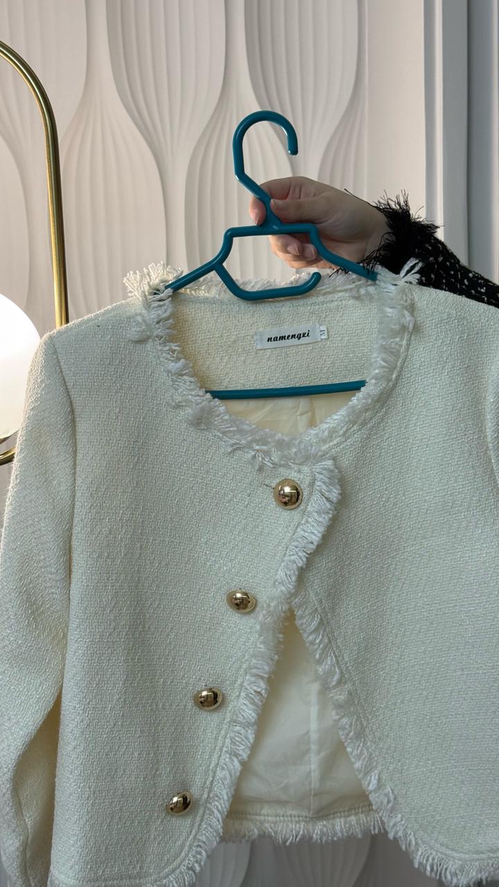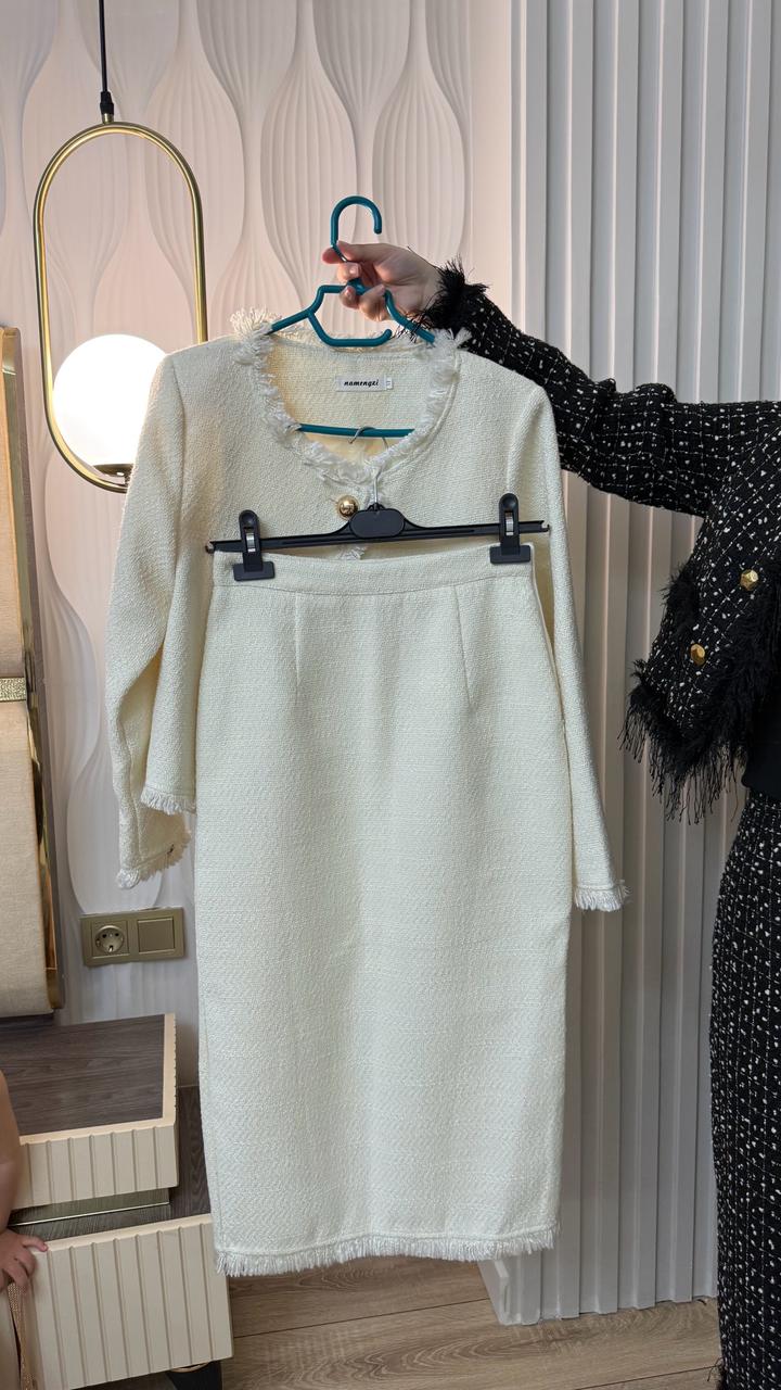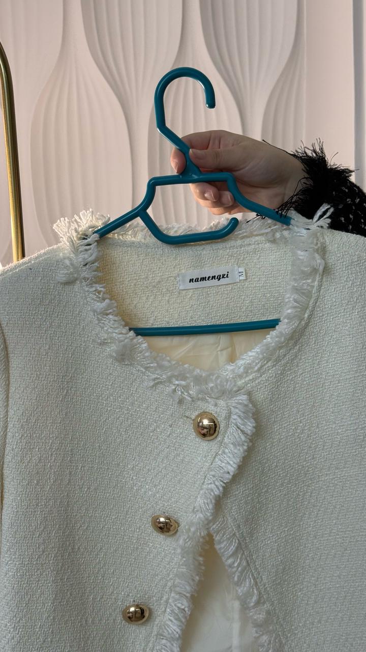 Корейская молочная твидовая двойка в идеальном состоянии, размер S. Рост модели 158 Артикул: 519922