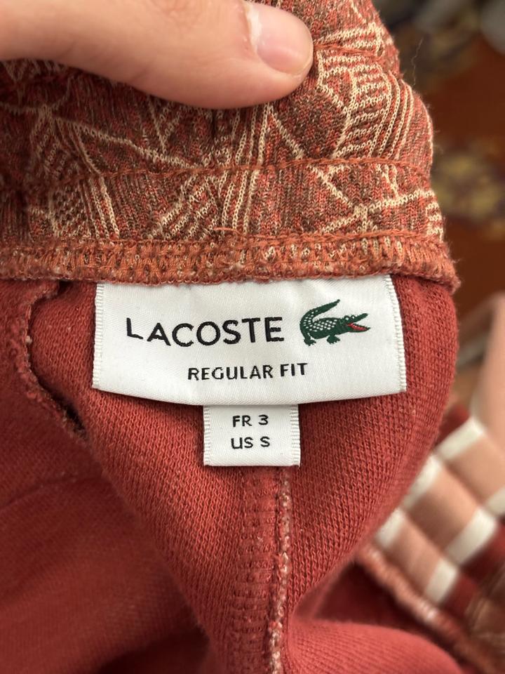 Спортивные штаны Lacoste из монограммной коллекции. Носились очень редко. В очень хорошем состоянии.Размер между s и m Артикул: 519929