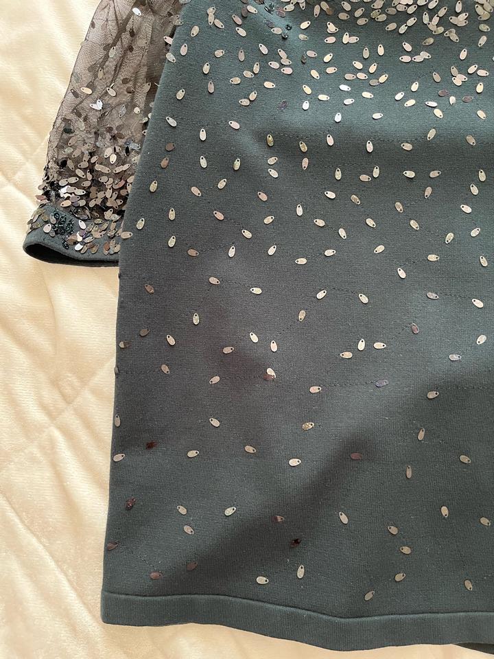Платье трикотажная с пайетками,вверх сетка. Темно зеленого цвета Артикул: 519956