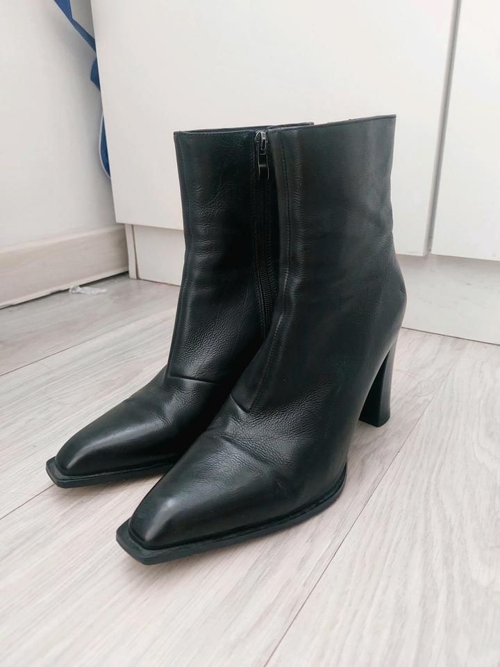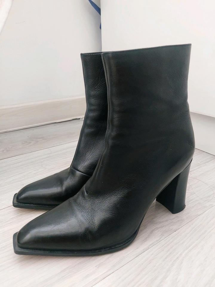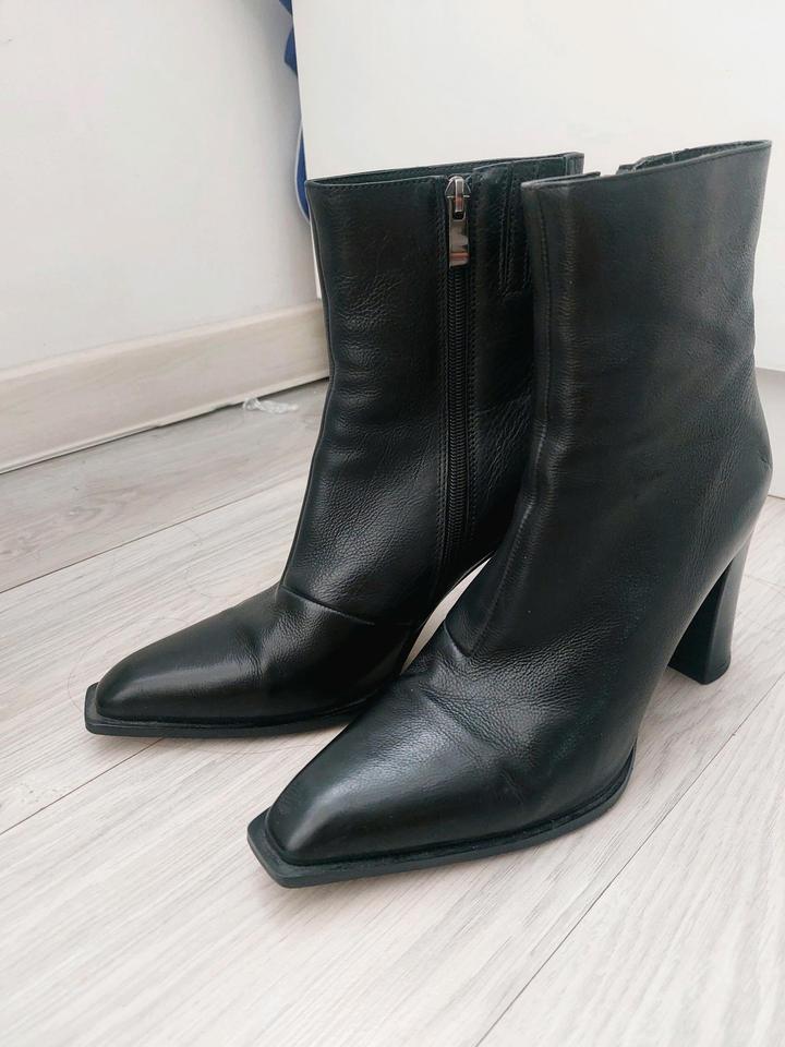 Продаю стальные и элегантные ботильоны из натуральной кожи, на удобном каблуке. Надевала пару раз, состояние очень хорошее. Очень аккуратно смотрятся на ноге, носик необычной формы, за счёт чего выглядят стильно и интересно. Внутри мягкая подкладка, всё видно на фото. Каблук устойчивый и удобный, подойдут на каждый день и на выход. Хорошо подойдут и под брюки, и под джинсы, и под более собранный образ. Артикул: 519998