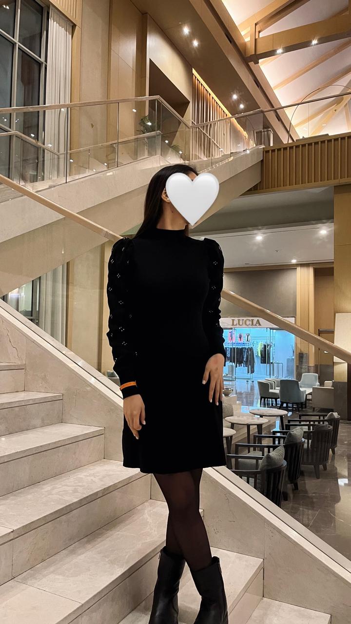 Продаю элегантное черное платье приталенного кроя в идеальном состоянии. Надевалось всего один раз на мероприятие, состояние абсолютно новой вещи. Высококлассный плотный трикотаж. Ткань отлично держит форму, не скатывается и не просвечивает. Объемные рукава-фонарики с изящной отделкой, которые придают образу особый стиль. Никаких зацепок, пятен или следов носки. Артикул: 520059