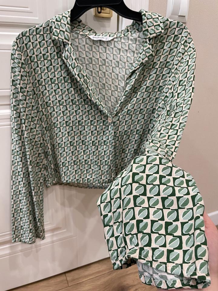 Блузка в зеленом цвете, очень приятная ткань к телу. Состояние отличное Артикул: 520078
