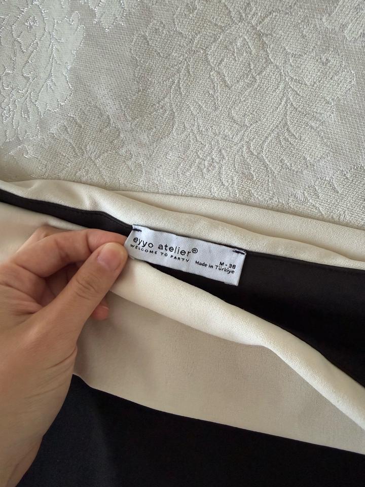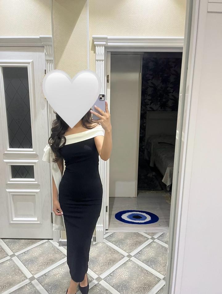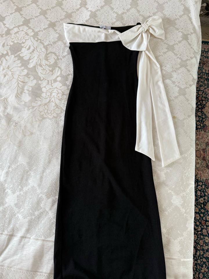 Черное платье по фигуре с белым бантом на плече, размер на бирке М(38) но оно маломерит, подойдет на хс-с Артикул: 520100
