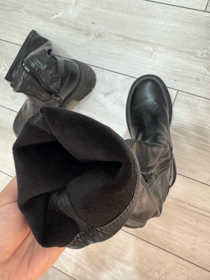 Черные сапоги из экокожи, весна-осень, теплая зима, с начесом внутри Артикул: 520117
