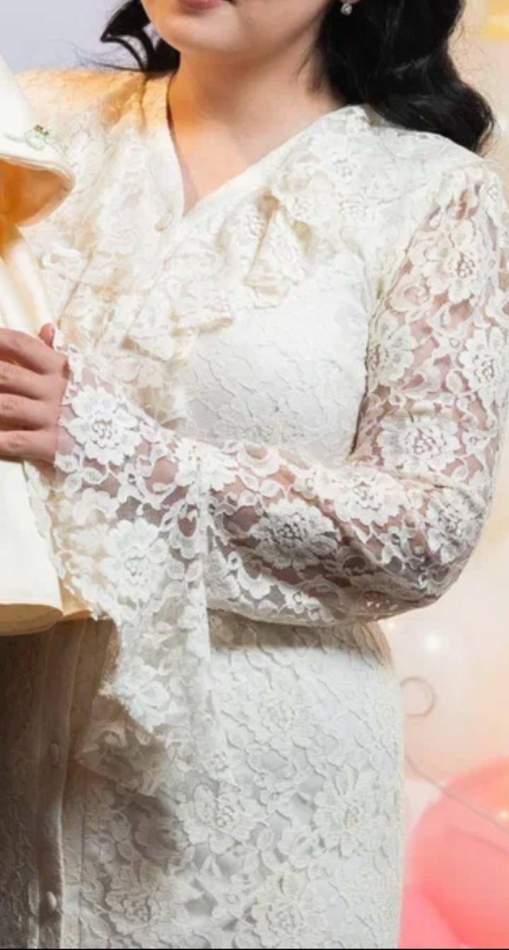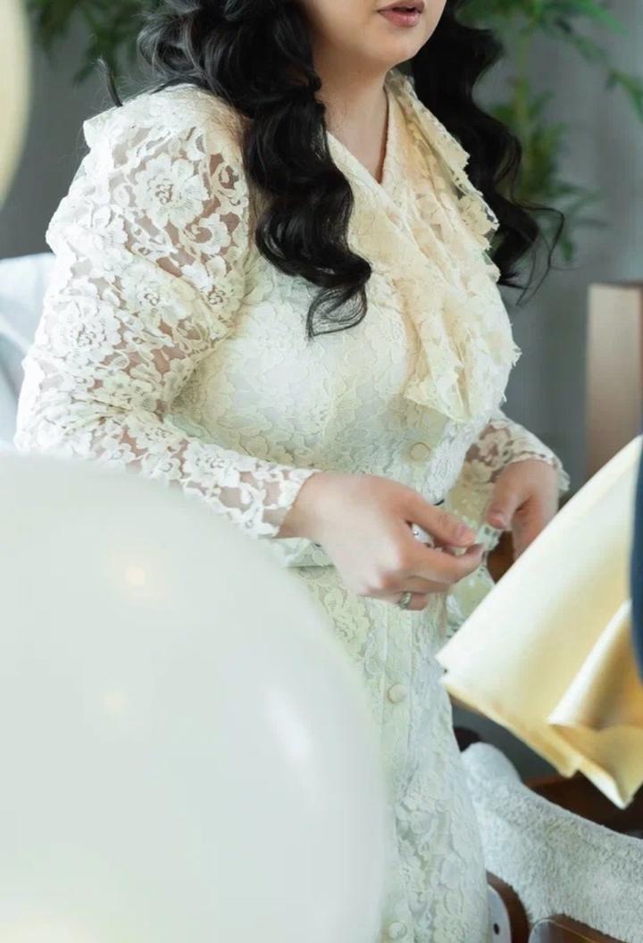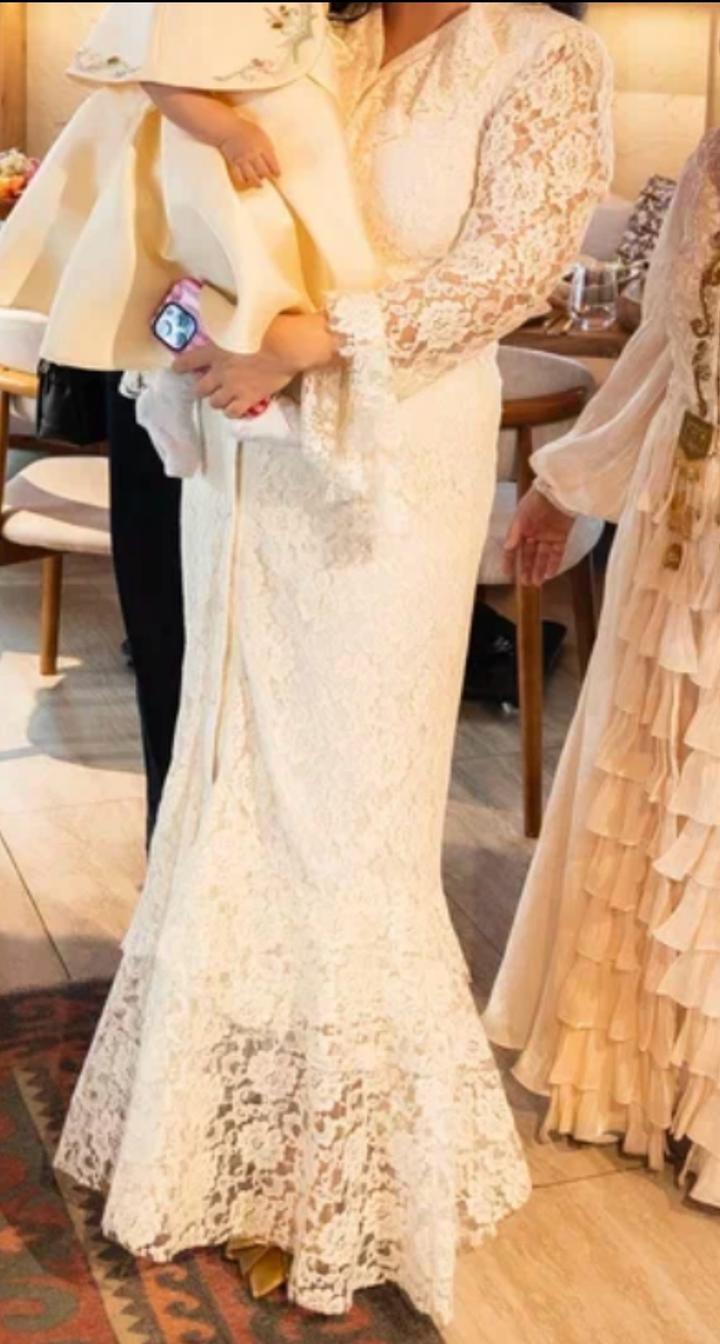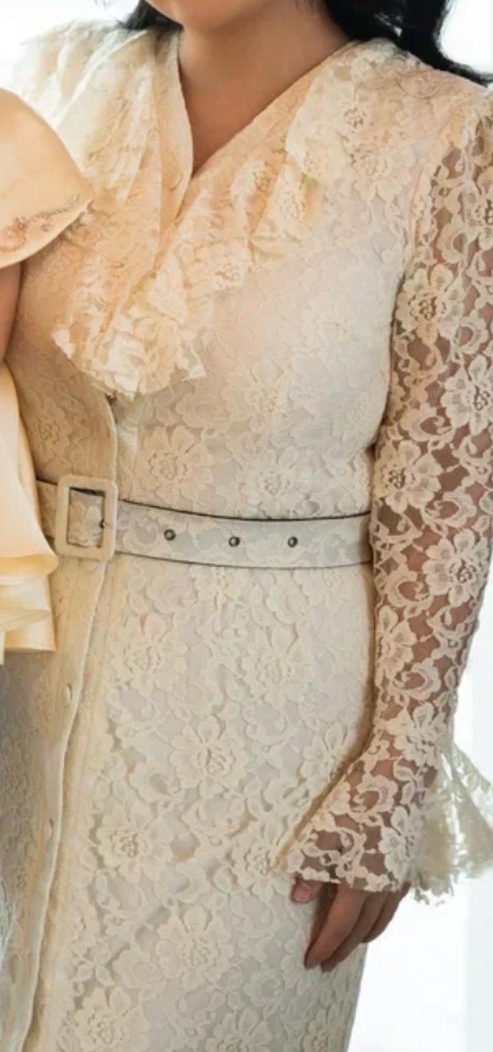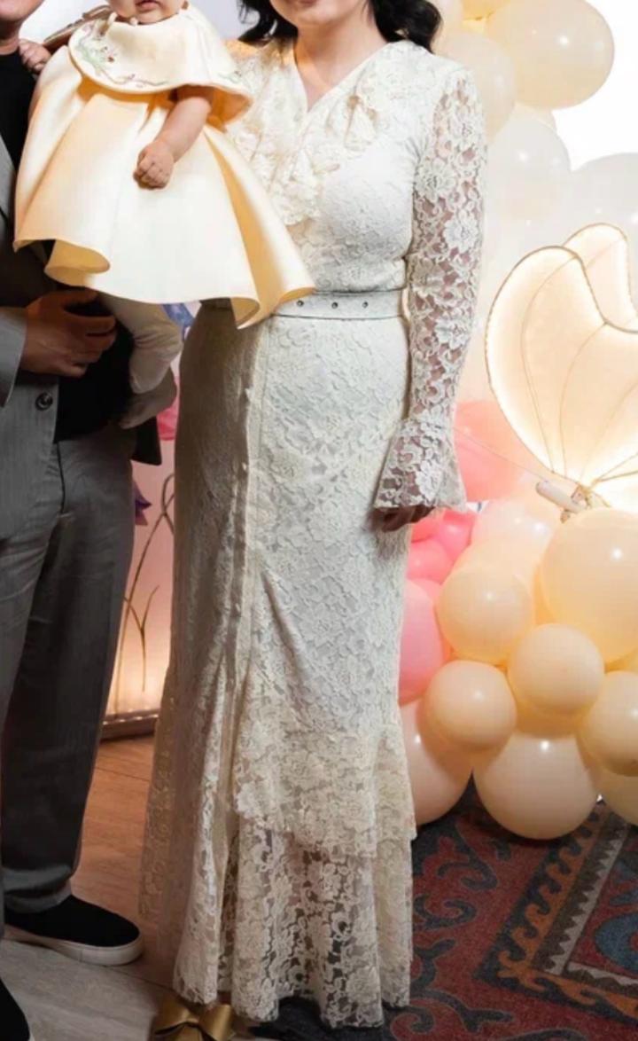 Платье вечернее. Надевала всего раз на годик дочери. С ремнем. Кружевное, цвет сливочного масла. Артикул: 520137