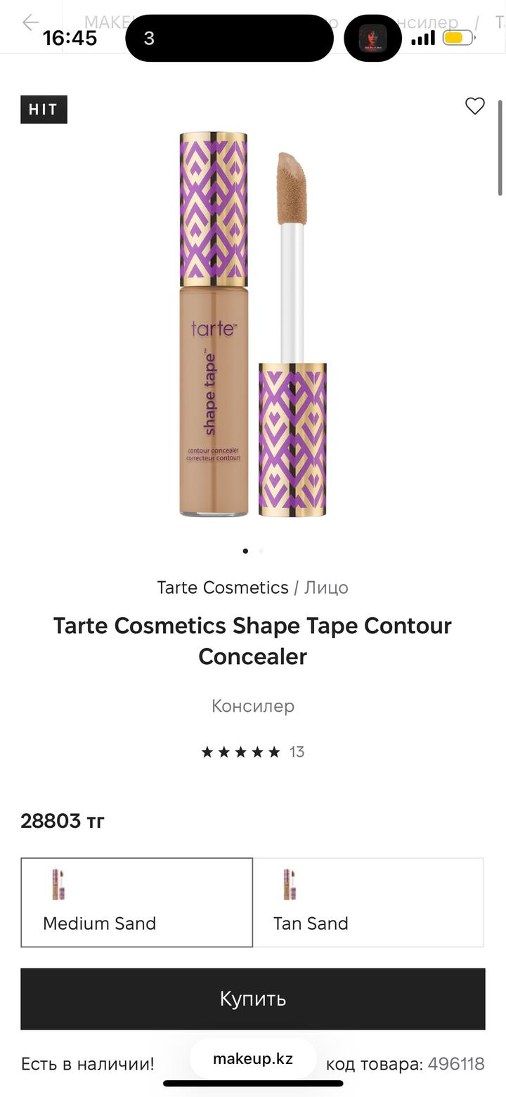 Консилер Shape Tape Contour Concealer от американского бренда Tarte Cosmetics — эффективный косметический продукт, помогающий замаскировать мелкие недочеты кожного покрова лица, выровнять его тон и рельеф. Артикул: 520195
