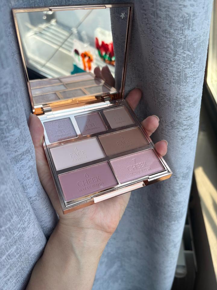Новая палетка, в оттенке Pretty, Glowing Beauty 7-в-1 3 оттенка теней Пудра для лица Бронзер Румяна Хайлайтер Артикул: 520209