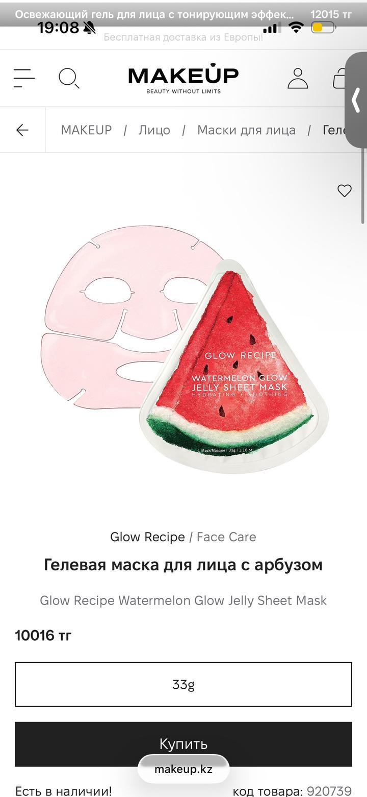 Положу маску в подарок , Гелевая маска для лица с арбузом Glow Recipe Watermelon Glow Jelly Sheet Mask Артикул: 520563