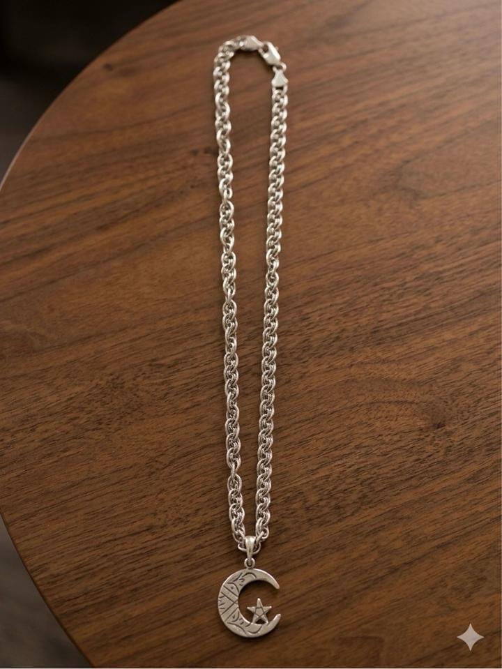 Цепь серебро 925 проба с подвеской полумесяц. Вес 50 гр вместе. Требуется чистка Артикул: 520622