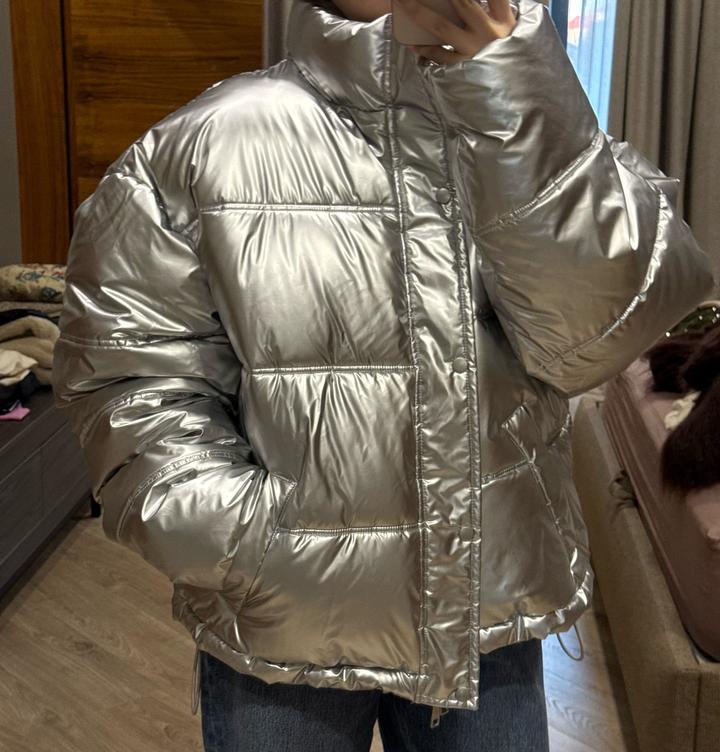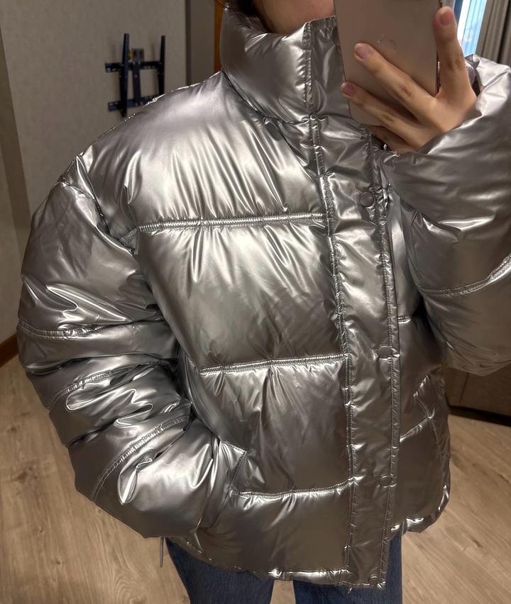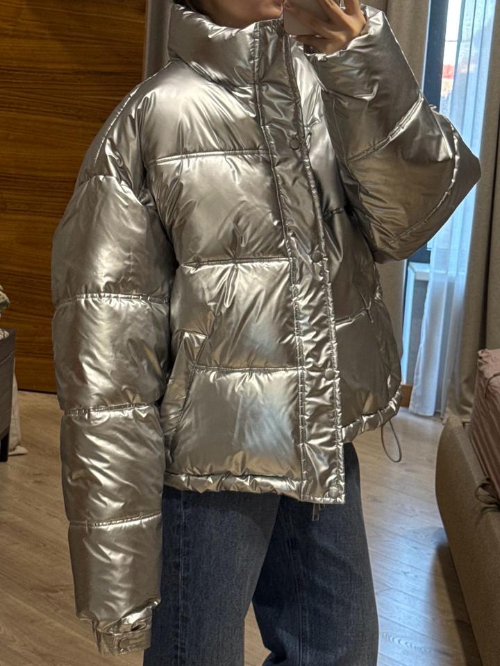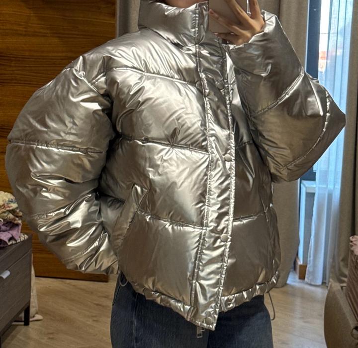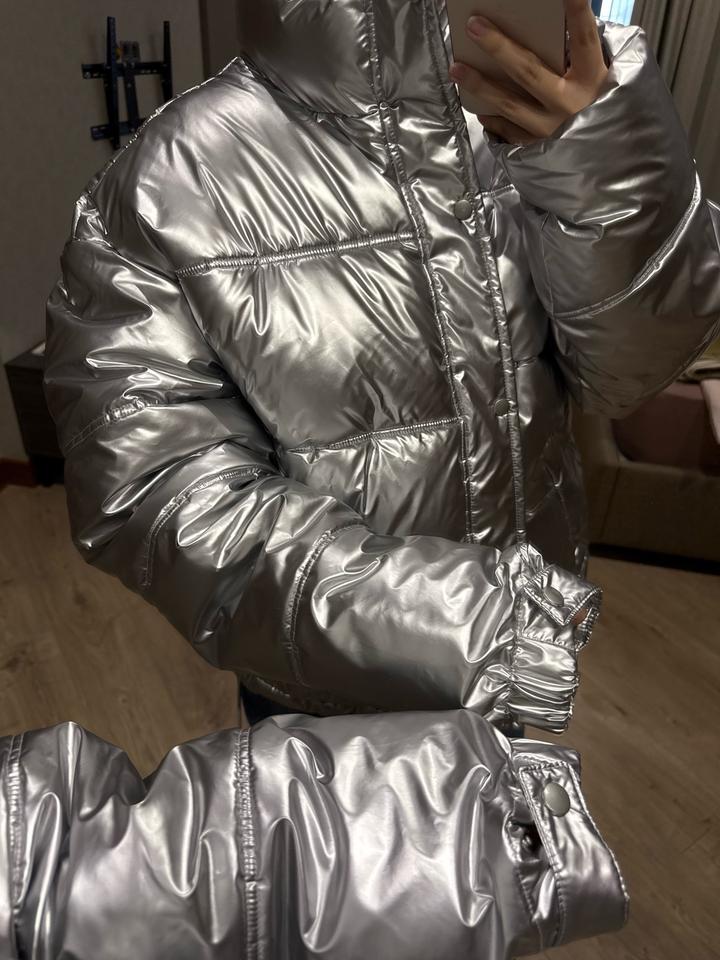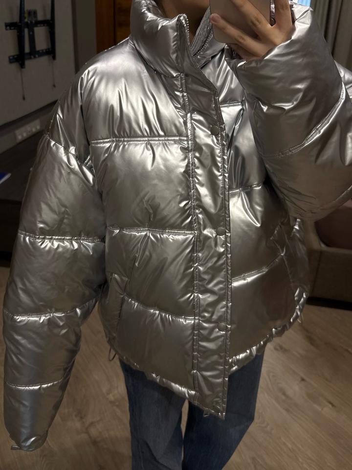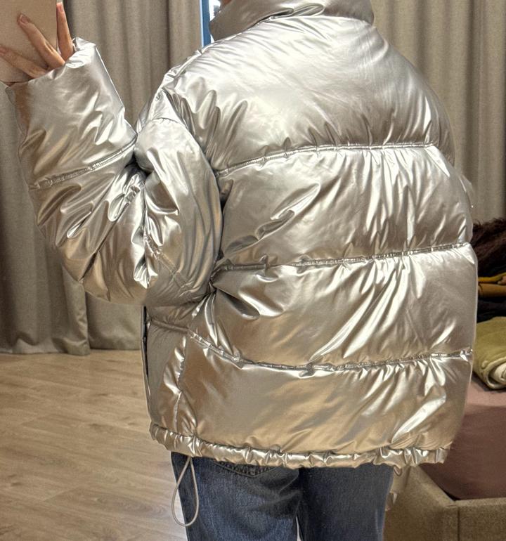 Стеганая куртка с металлическим эффектом. Был приобритен с мужского отдела, но подходит как унисекс. Артикул: 520688