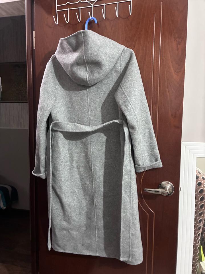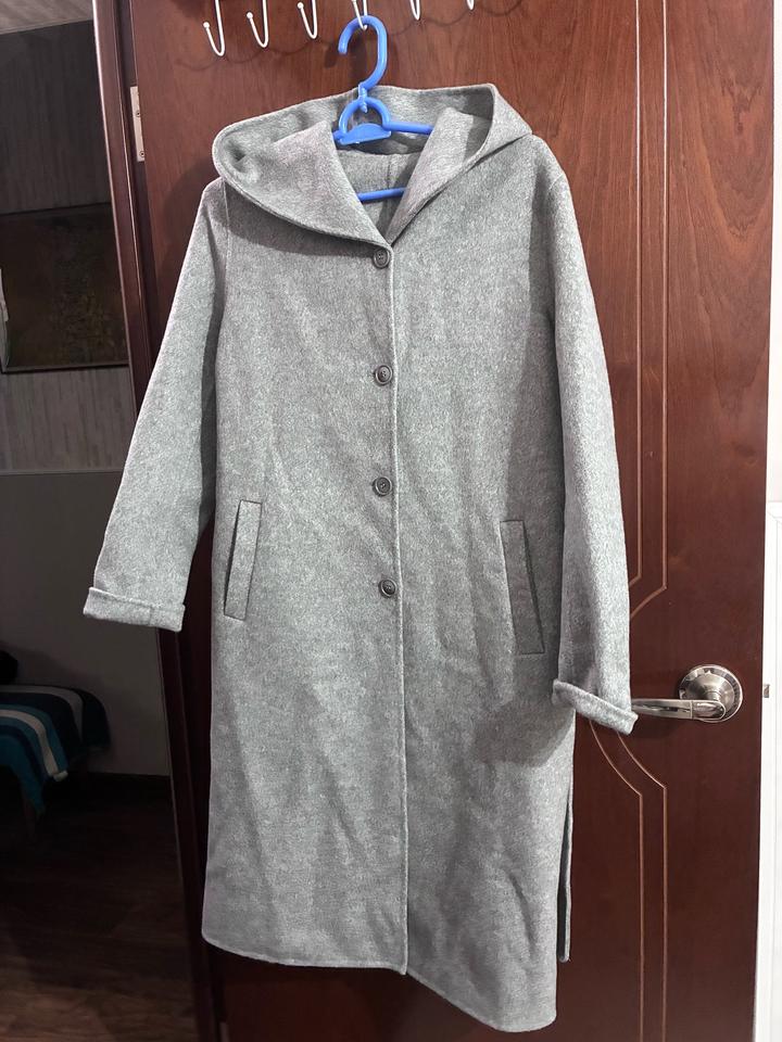 Серое пальто с капюшоном и поясом, натуральная шерсть, осень-весна Со внутренней стороны изначально была красная нить, не убирала т.к не влияет на внешний вид В отличном состоянии, без дефектов Артикул: 520691