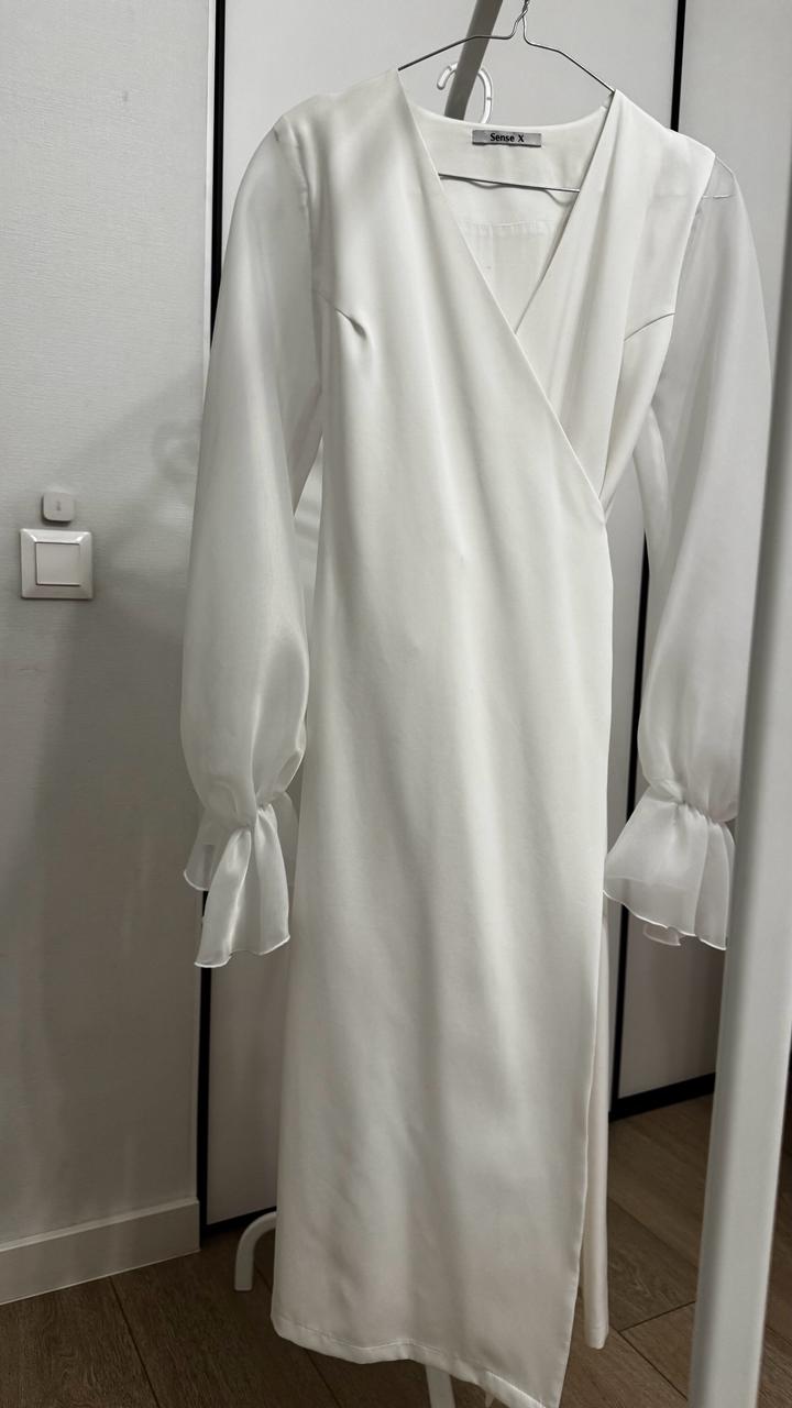 Белое платье миди на запах с пышными рукавами в размере xs-s Артикул: 520729