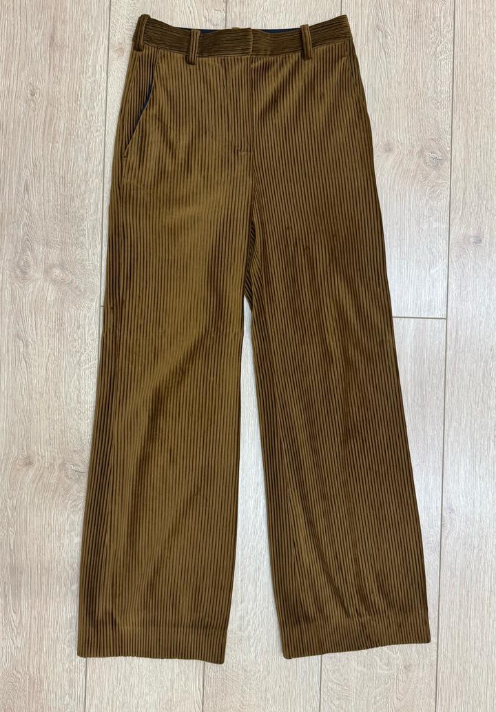 Крой: Брюки отличаются очень широким, расслабленным силуэтом (wide-leg) и высокой посадкой на талии. Текстура: Использован премиальный хлопковый вельвет с очень четким и выраженным вертикальным рубчиком, что создает глубокую игру света и тени на ткани. Цвет: Этот специфический оттенок бренд часто называл «Golden Brown» или «Olive Brown». Детали: Характерные глубокие боковые карманы и минималистичная фурнитура, типичная для скандинавского дизайна Acne. Состояние идеальное. Артикул: 520754