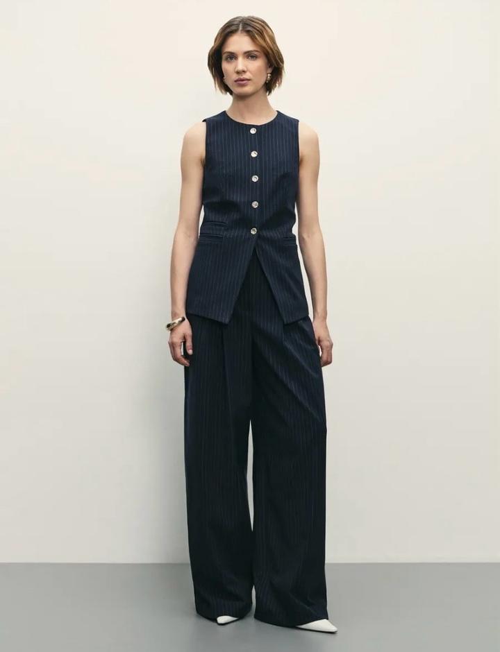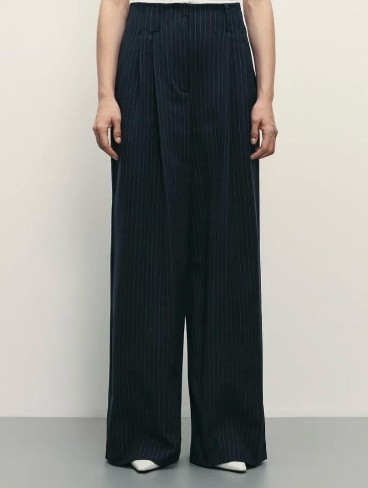 Качественные брюки-палаццо бренда Zarina. Идеальная посадка на талии. Цвет темно-синий в белую тонкую полоску. Есть акцентная белая деталь на талии. Размер 44 (M), на параметры обхват талии 66-68 см, обхват бедер 94-96 см. У меня параметры обхват талии 70 см, обхват бедер 98 см, сели впритык, поэтому продаю Артикул: 520820