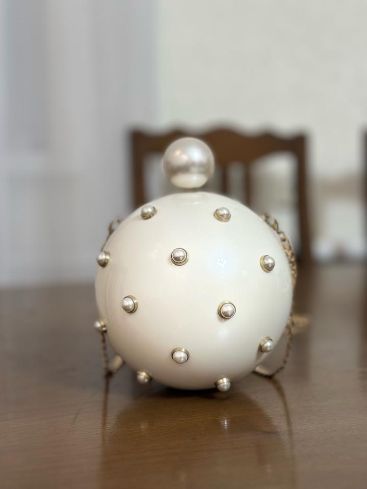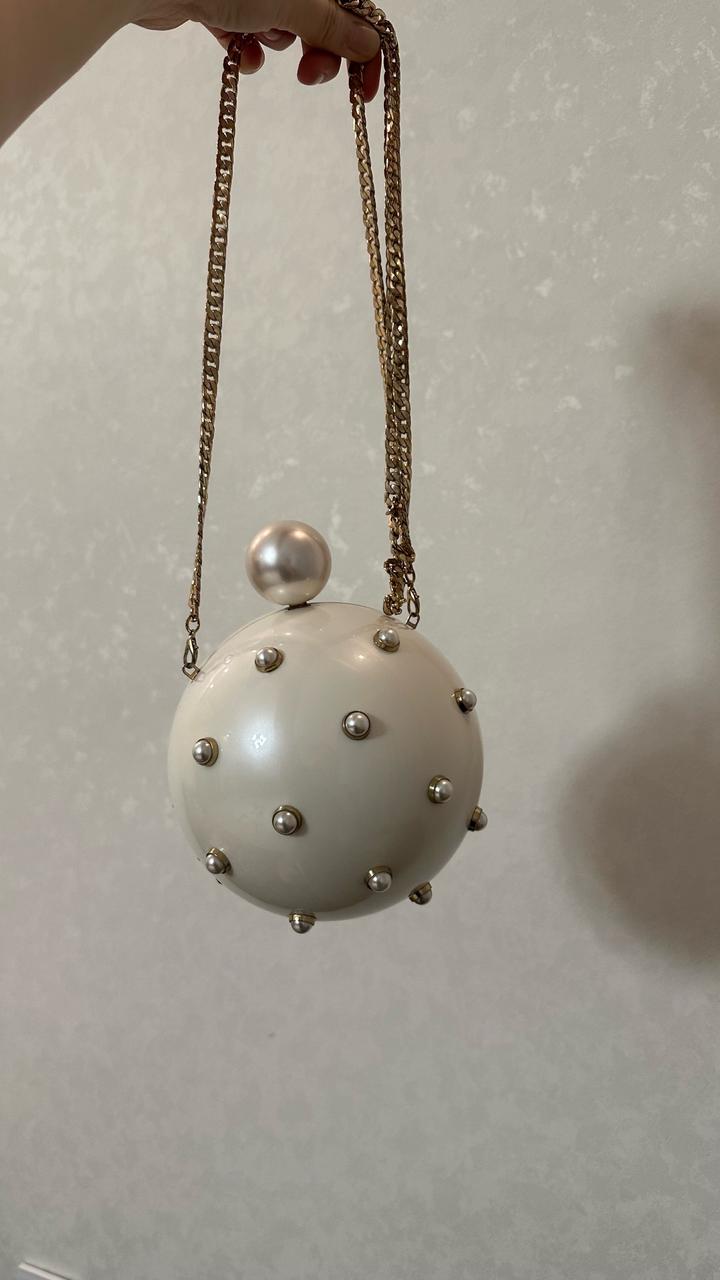 сумка из пластика в форме жемчуга, на длинном ремешке в хорошем состоянии отлично подойдет на мероприятие и впишется в вечерний образ Артикул: 520885