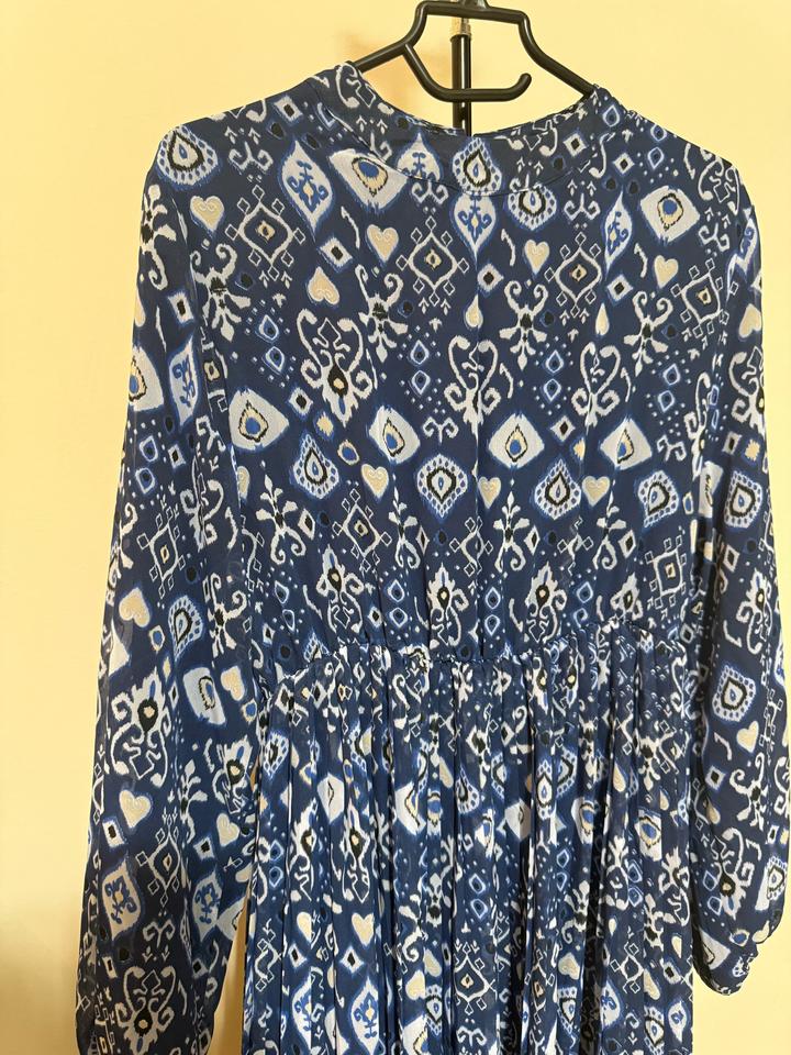 Синее платье в пол в этно стиле, размер 38 (44, М) куплено в Турции. Подкладки даже в рукавах. Ткань - шифон. Артикул: 520971