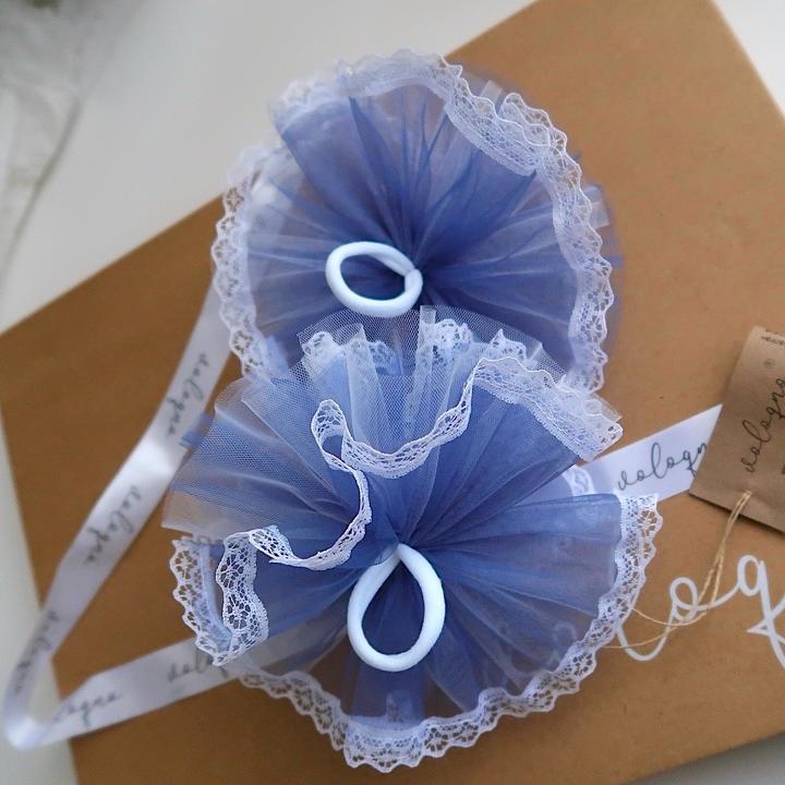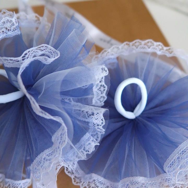 Банты на резинке для волос, 2 шт, 16 см, синий, белый-