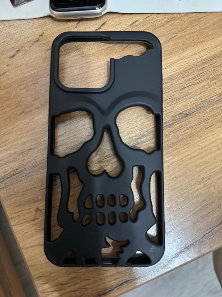 Черный чехол на 15 про макс с черепом,покупала через маркетплейс случайно заказав для про макса,у меня про Город Астана можете самовызовом забрать или отправить в другой город Артикул: 521056